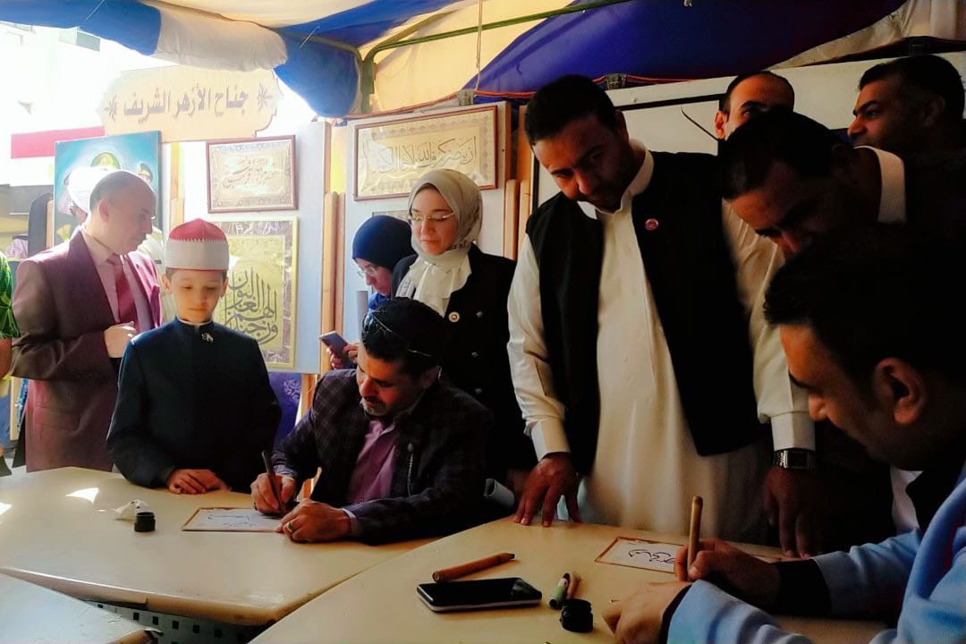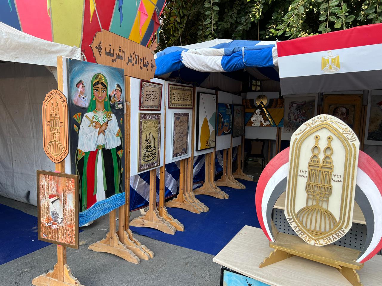 وعرض مكتب الأزهر لدعم الابتكار خلال المعرض مجموعة من الأعمال الفنية من الخط العربي بأنواعه وفنونه ولوحات فنية تعبر عن انتصارات حرب أكتوبر ومعالم مصر السياحية بإعادة تدوير المستهلكات البيئية بشكل نفعي وجمالي تفعيلا لعمل «وحدة الأزهر للاستدامة البيئية» والمبادرة الرئاسية «بداية جديدة لبناء الإنسان»، مع وجود خطاطين من الأزهر لكتابة الأسماء للزائرين بالمجان وهو ما حظي باهتمام من رواد المعرض وجذب كل الزائرين بمختلف الجنسيات إلى جَنَاح الأزهر لكتابة أسمائهم وأسماء أبنائهم، وتنظيم ورش عمل للرسم المباشر لعدد من فناني الأزهر للتعبير عن البيئة المصرية وانتصار أكتوبر المجيد.