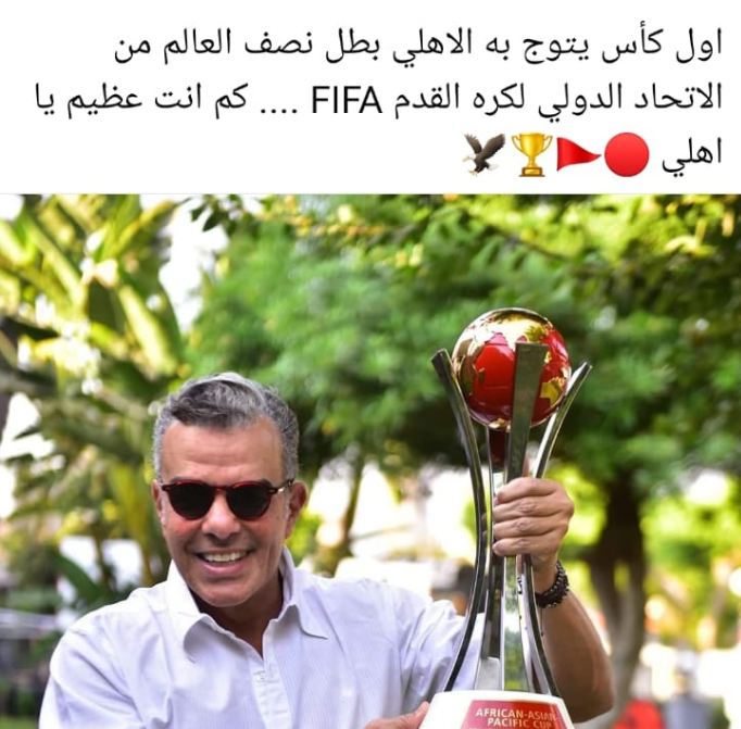 ونشر مرتجي صورة له مع الكأس الذي تسلمه الأهلي بالأمس معلقً عليها : أول كاس يتوج به الأهلي بطل نصف العالم من الاتحاد الدولي لكرة القدم FiFa .. كم انت عظيم يا أهلي.