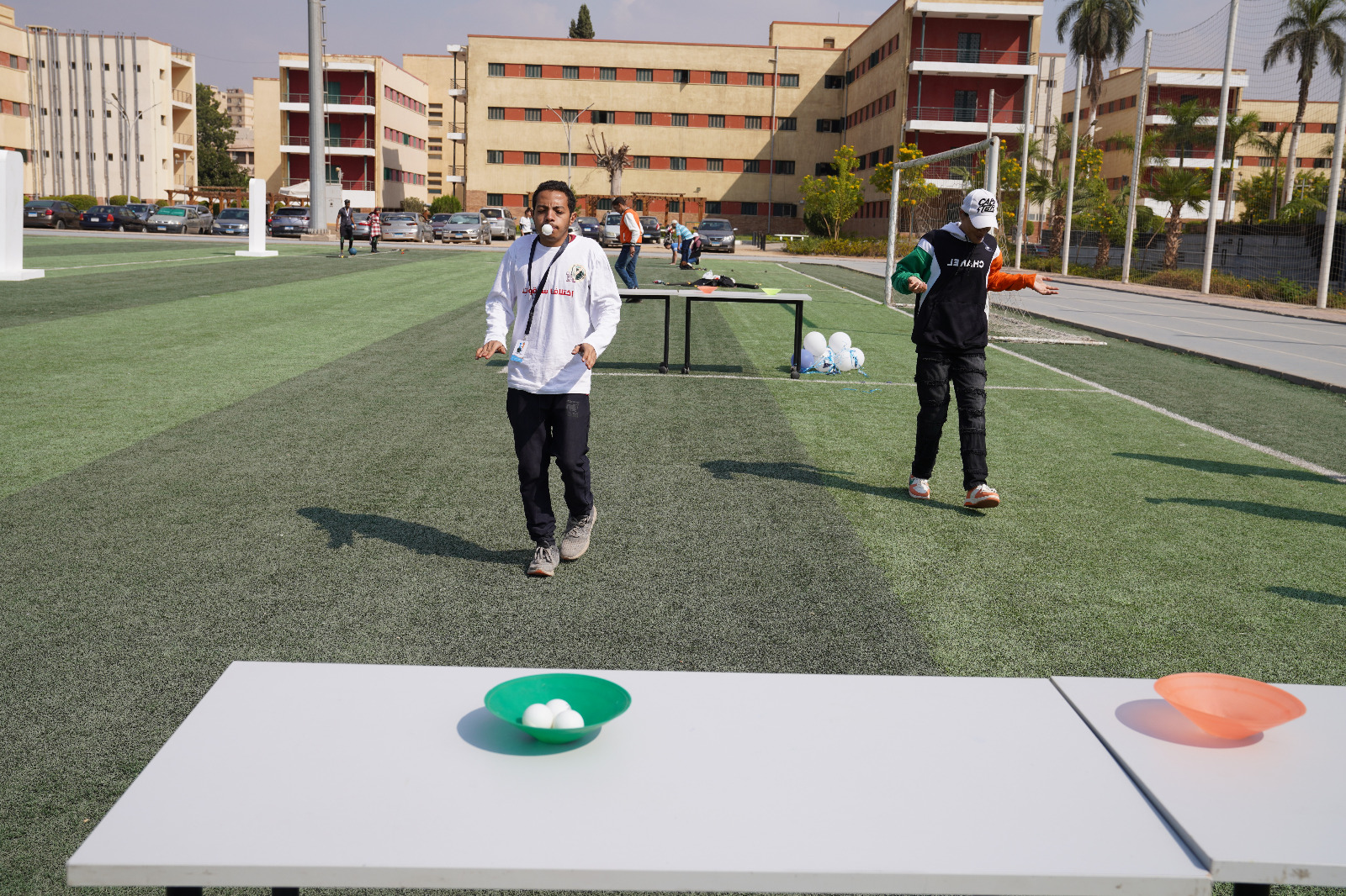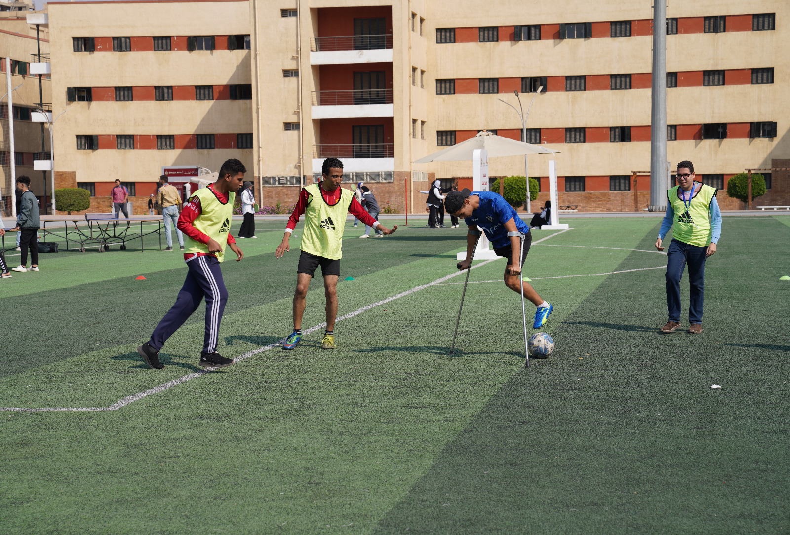 وتضمن اليوم الرياضي العاب ترفيهية تلي ماتش، ومباريات كرة قدم خماسي لدمج الطلاب ذوي الاعاقة والطلاب الأسوياء.
