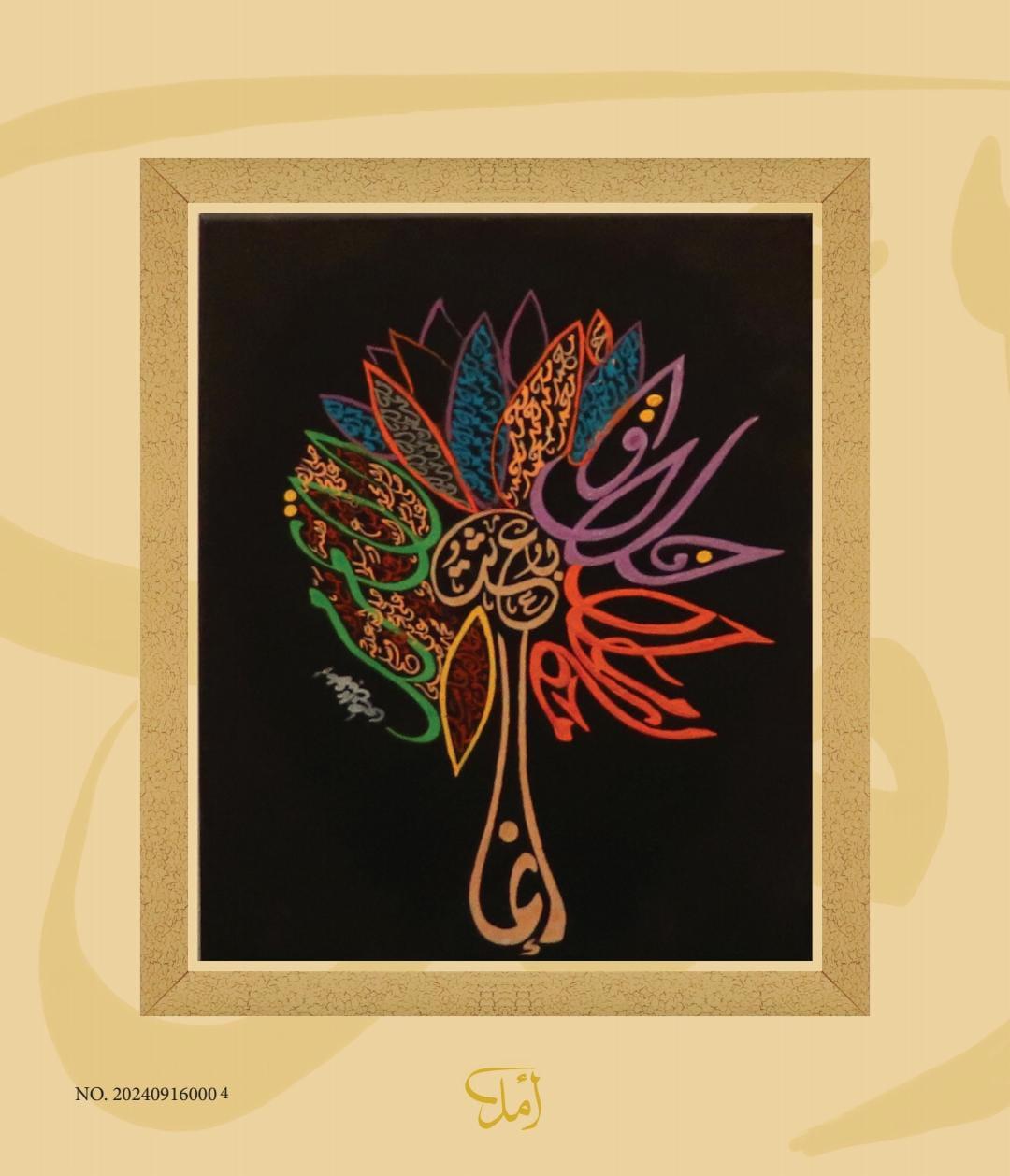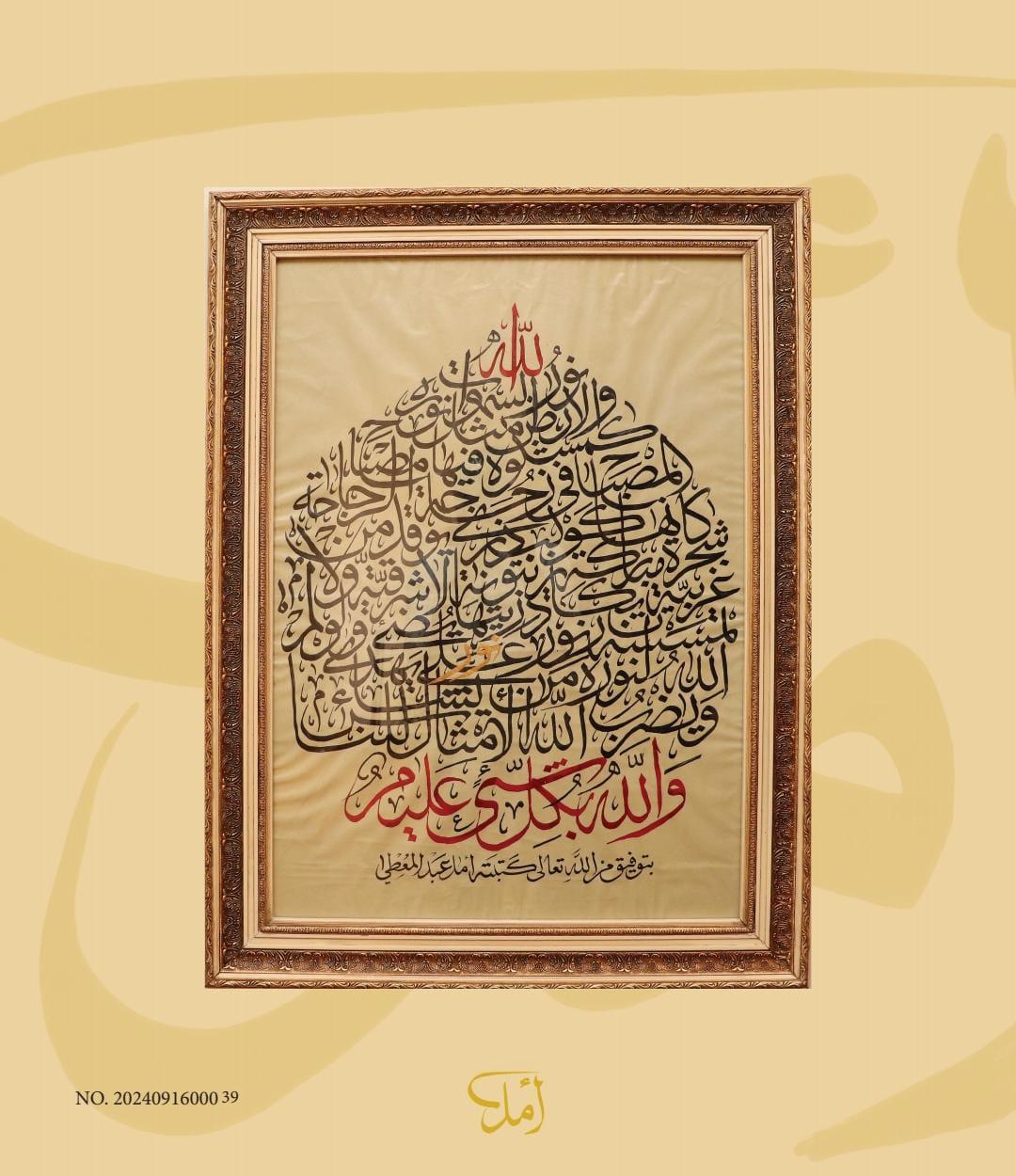 يضم المعرض، حوالي ٢٥ لوحة فنية مختلفة التكوين والأحجام والشكل لآيات الذكر الحكيم، حيث تجمع بين الخطوط والزخارف بإستخدام الورق الطبيعي والأحجار المختلفة منها الحجر العربي التقليدي والأحجار المصنعة من اللون الأسود والألوان الأخرى.