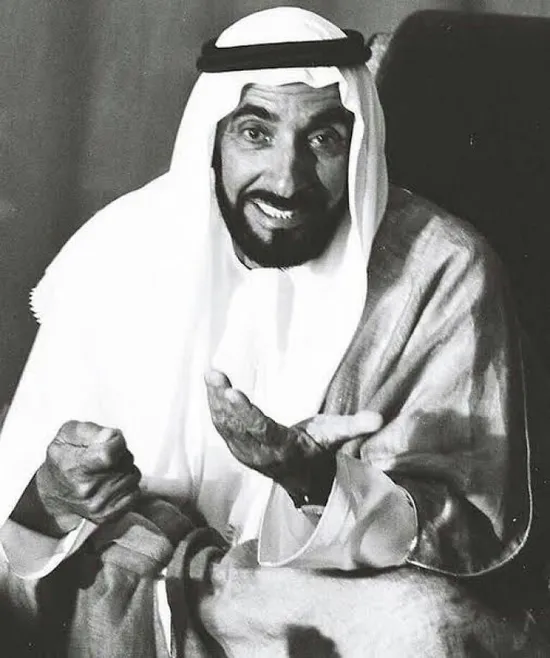 كان يلقب بحكيم العرب، كان بحق زعيم يشار له بالبنان كان له الفضل الاكبر في تاسيس دوله الامارات واستطاع في سنوات قليله عمل نهضه حضاريه في الامارات تقدم في كافه المجالات حتي أصبحت قوه اقتصاديه هائله في العالم العربي.