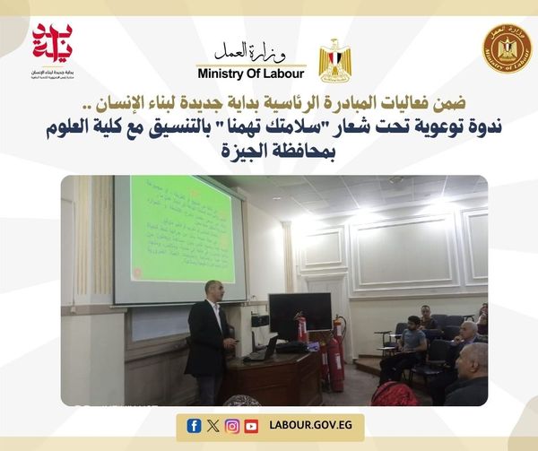 وزارة العمل تنظم ندوة "سلامتك تهمنا" بالتنسيق مع كلية العلوم جامعة القاهرة
