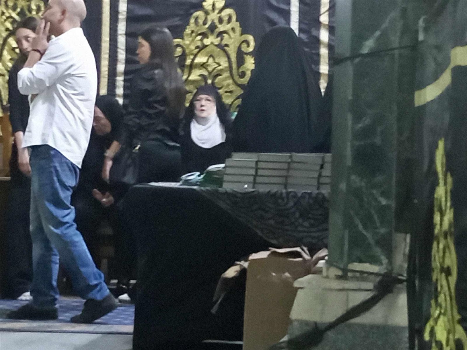 ظهرت الفنانة شمس البارودي زوجة الراحل حسن يوسف في العزاء وبدا عليها ملامح الحزن، وحضر أيضا كل من نقيب المهن التمثيلية الفنان أشرف ذكي، رانيا فريد شوقي، دنيا سمير غانم وزوجها الإعلامي رامي رضوان.