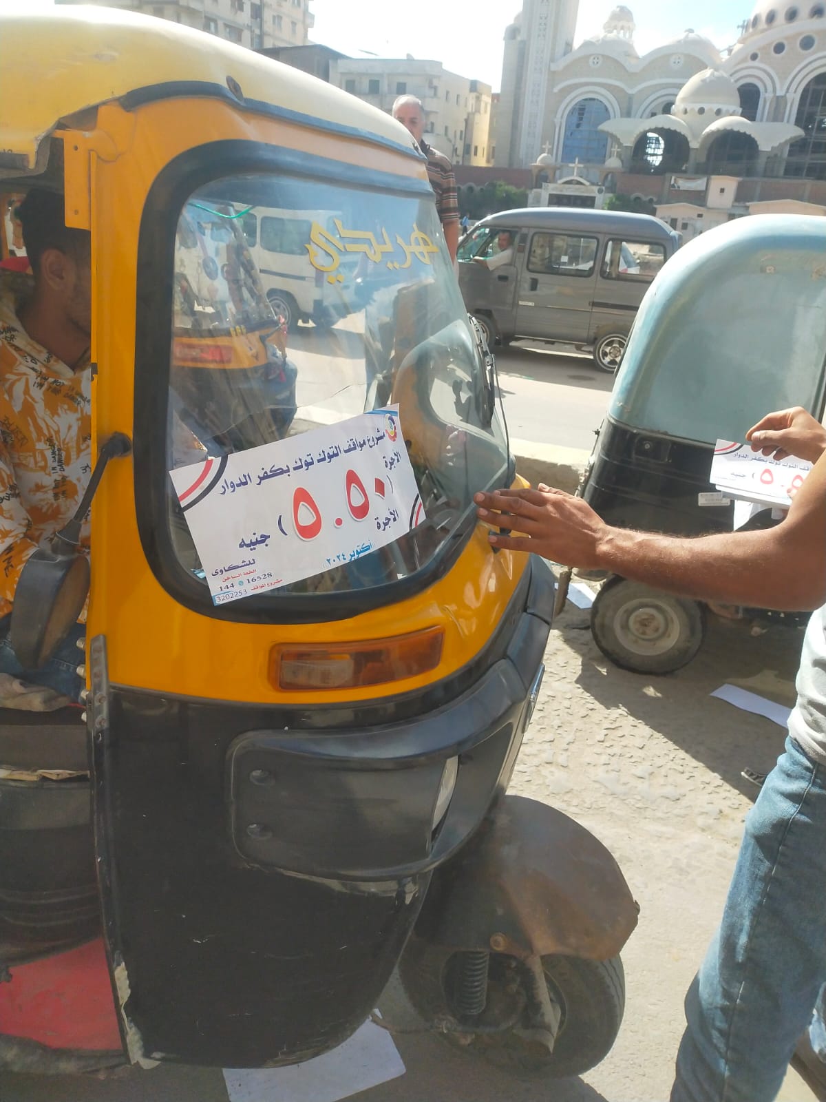 وبعد استفحال الظاهرة تقدم عددا من الصحفيين النقابيين ، ومراسلي الصحف المعتمدة ،من أبناء مدينة كفر الدوار، بطلب إلي الدكتورة جاكلين عازر محافظ البحيرة ، لتحديد أجرة رسمية للتوك توك ، لرفع المعاناة عن أهالي المدينة ومعظمهم من أصحاب الدخل المحدود ، وبالفعل استجابت المحافظ وتم تحديد مبلغ خمسة جنيهات ونصف أجرة داخل المدينة ، وبالفعل تم تعليق ملصقات بالأجرة علي التكاتك ، وسط فرحة شديدة من مواطني المدينة، لكن بعد دقائق محدودة ، قام سائقي التكاتك بنزع تلك الملصقات ، وإجبار الأهالي علي سديد الأجرة مضاعفة تصل إلي 30جنيها ، في تحدي واضح لقرارات الحكومة ، وكأن ظاهرة التوك توك أصبحت فوق القانون .