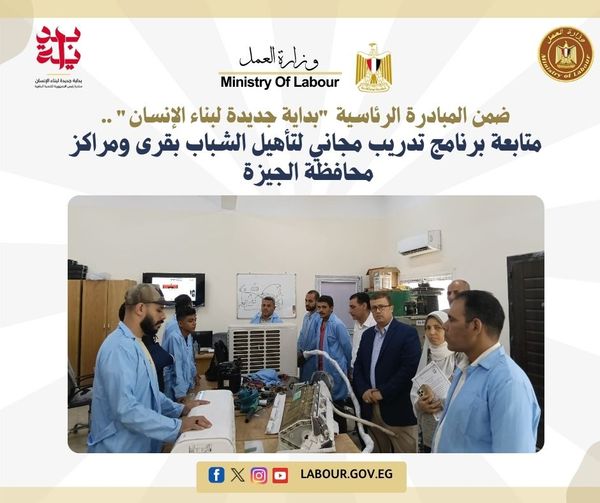 وزارة العمل تتابع برنامج تدريب مجاني لتأهيل الشباب بالجيزة