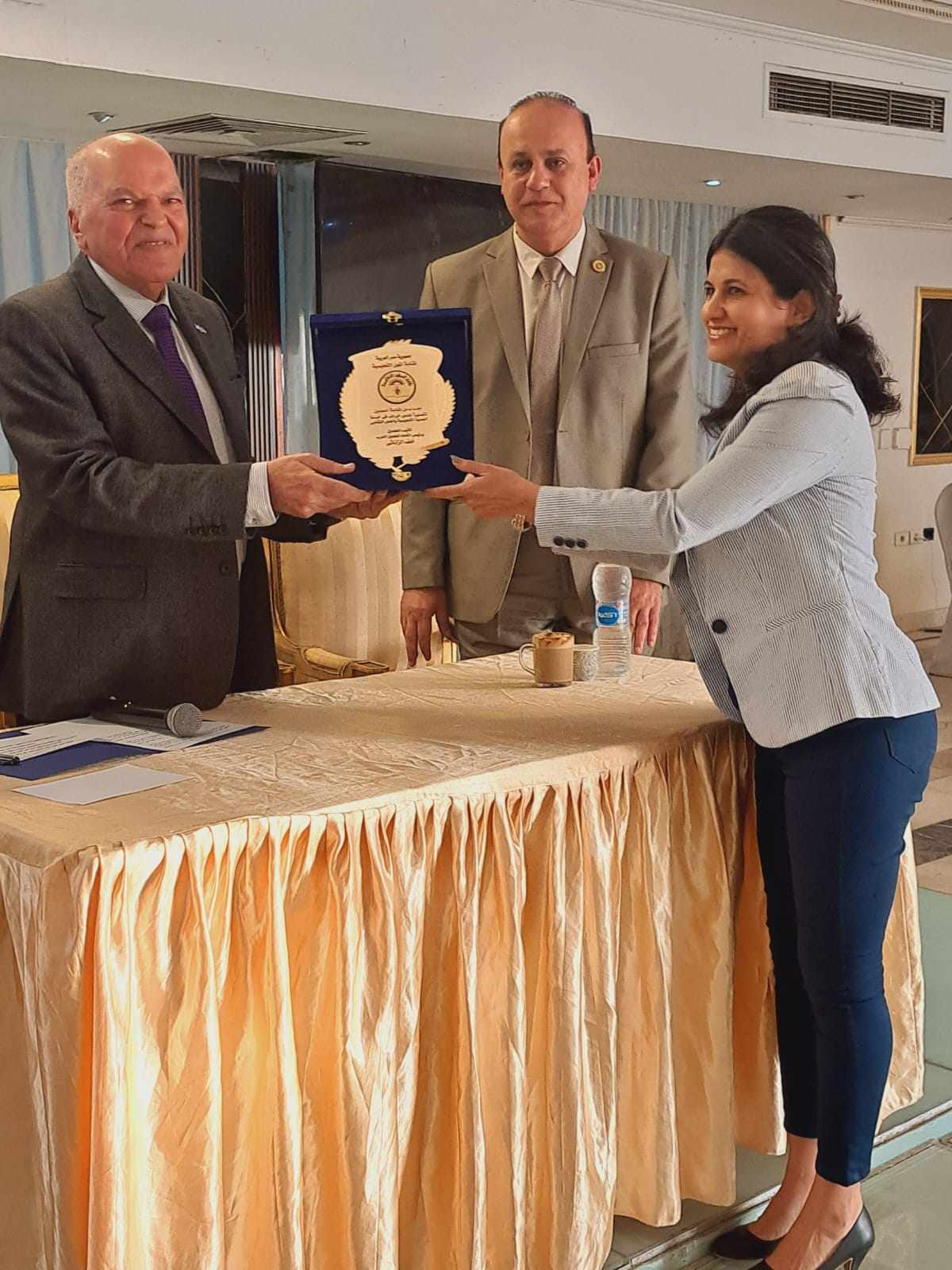 كما قام بتكريم المهندس أندرو مجدي خزام لحصوله على براءة اختراع من مكتب براءات الاختراع المصري بوزارة البحث العلمي في خرسانة مسحوق الكاوتش Mk BIok