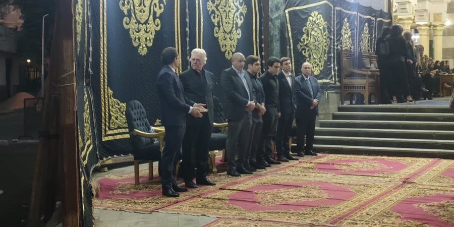 المنتج محمد حفظي يقدم واجب عزاء مصطفى فهمي بمسجد عمر مكرم