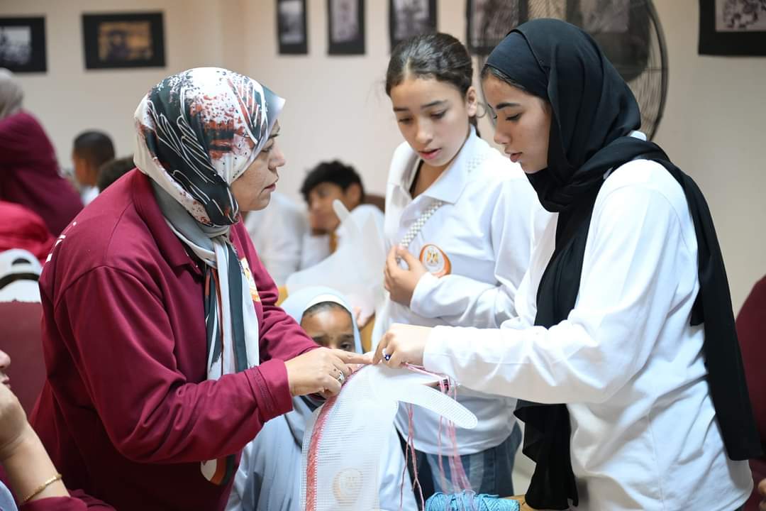 وتواصلت الفعاليات مع الورش الحرفية، وقامت المدربة نجلاء شحاتة بتعريف الأطفال بالغرز المختلفة بهدف ابتكار تصاميم جديدة للحقائب بالشبك.