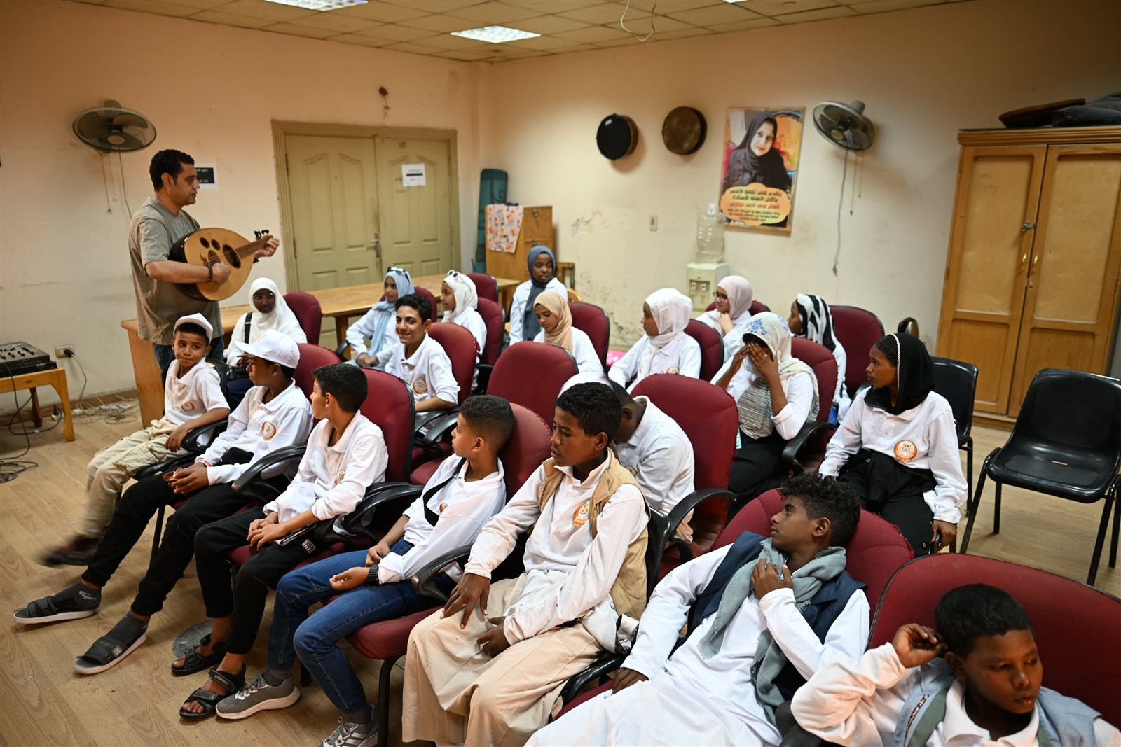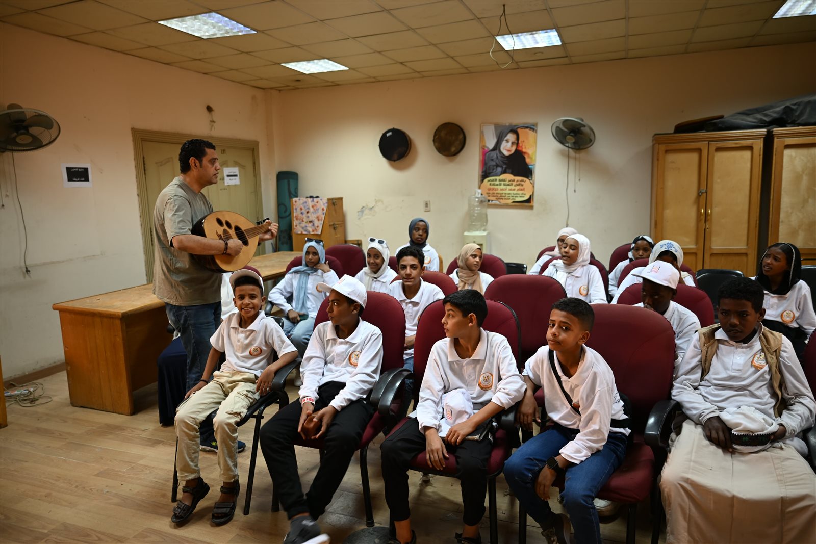 وفي ورشة الموسيقى، ناقش الفنان ماهر كمال مع الأطفال أساسيات الموسيقى، موضحا أنواع الآلات المختلفة وكيفية التعامل معها، أعقب ذلك تدريبات على عزف بعض النغمات البسيطة، لتنمية الحس الإيقاعي لديهم.