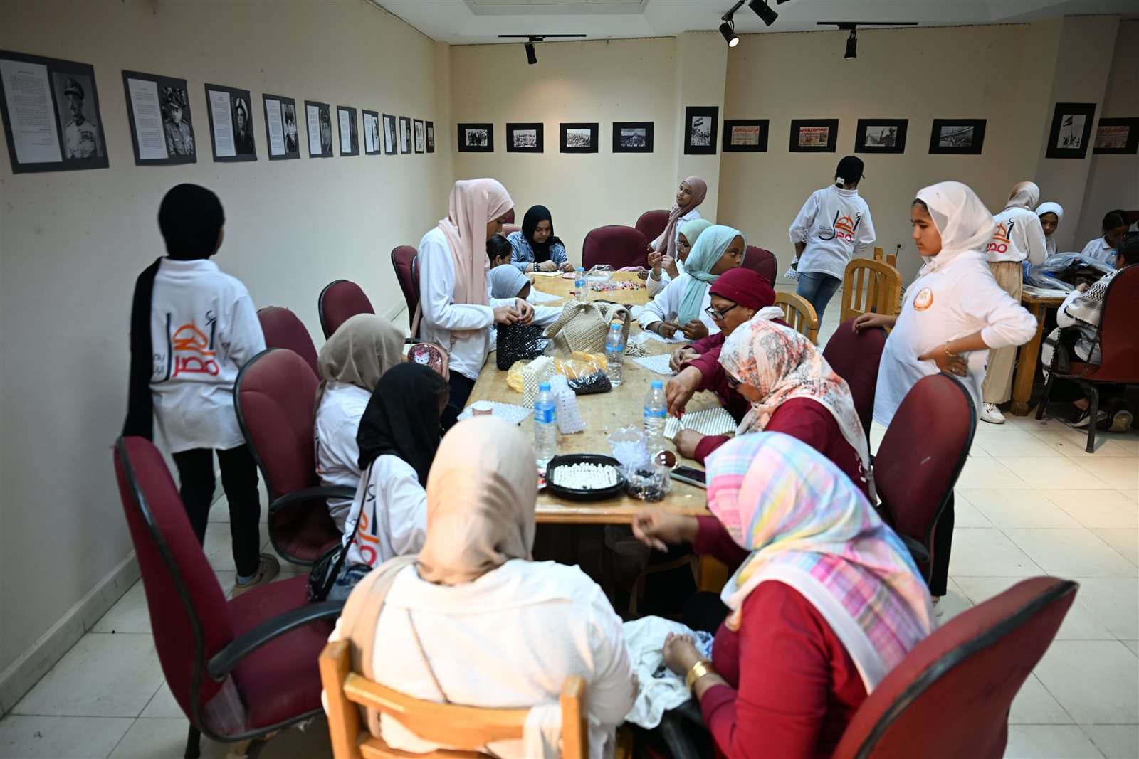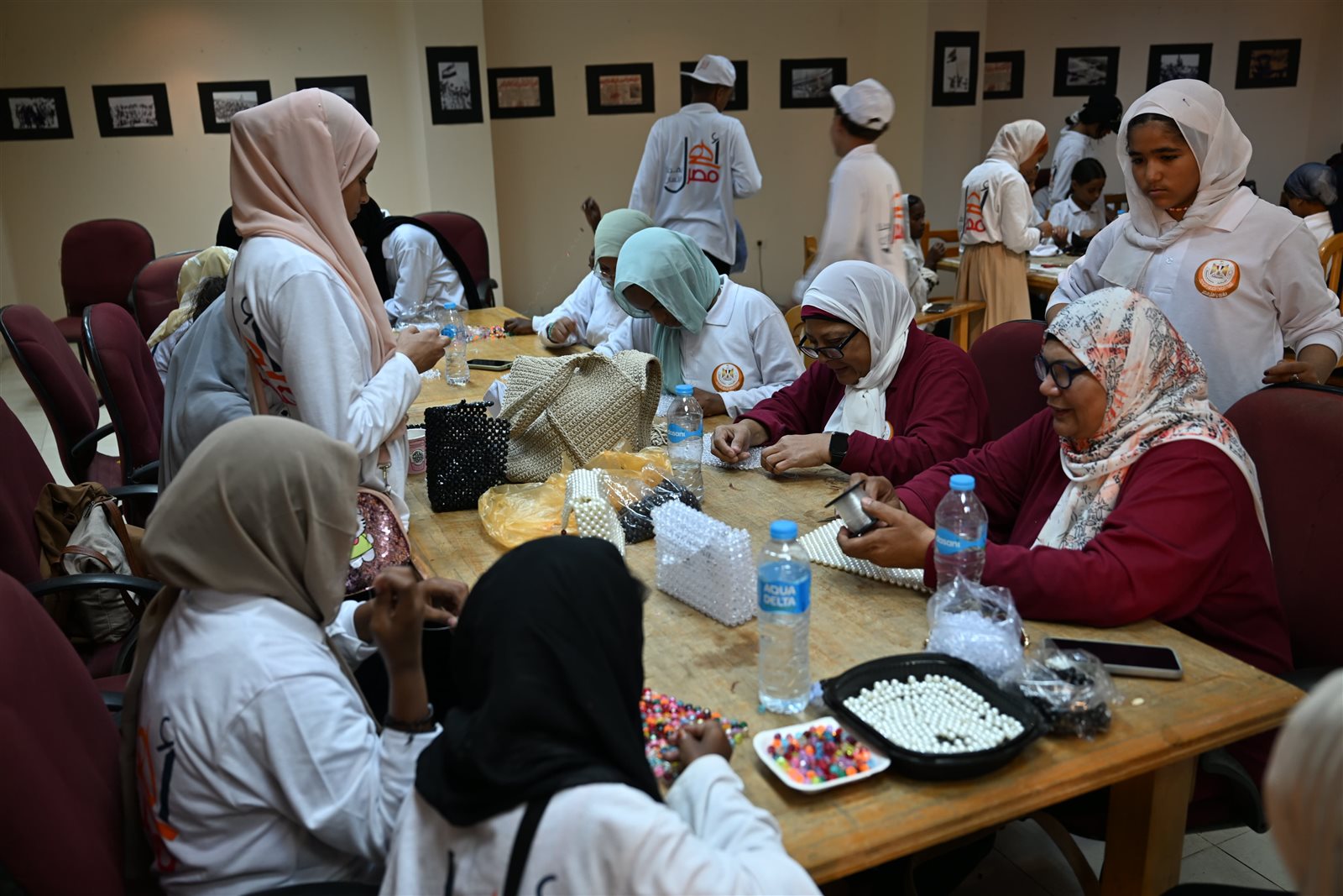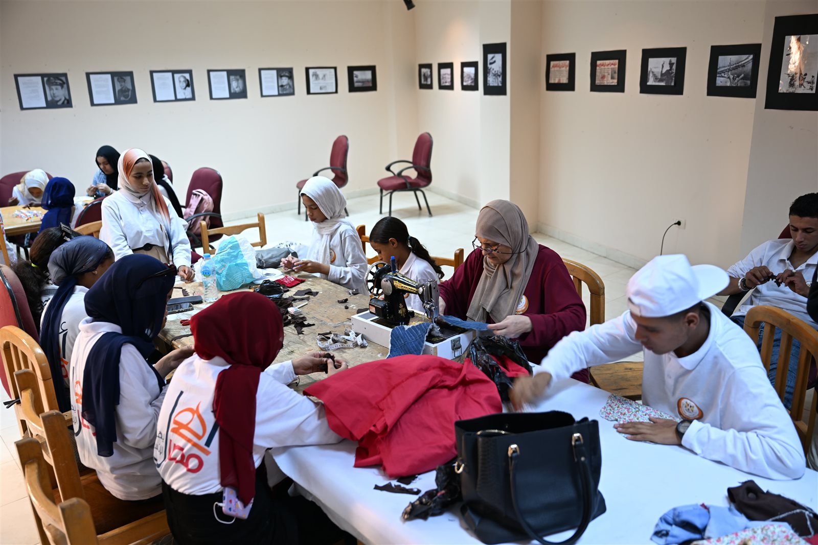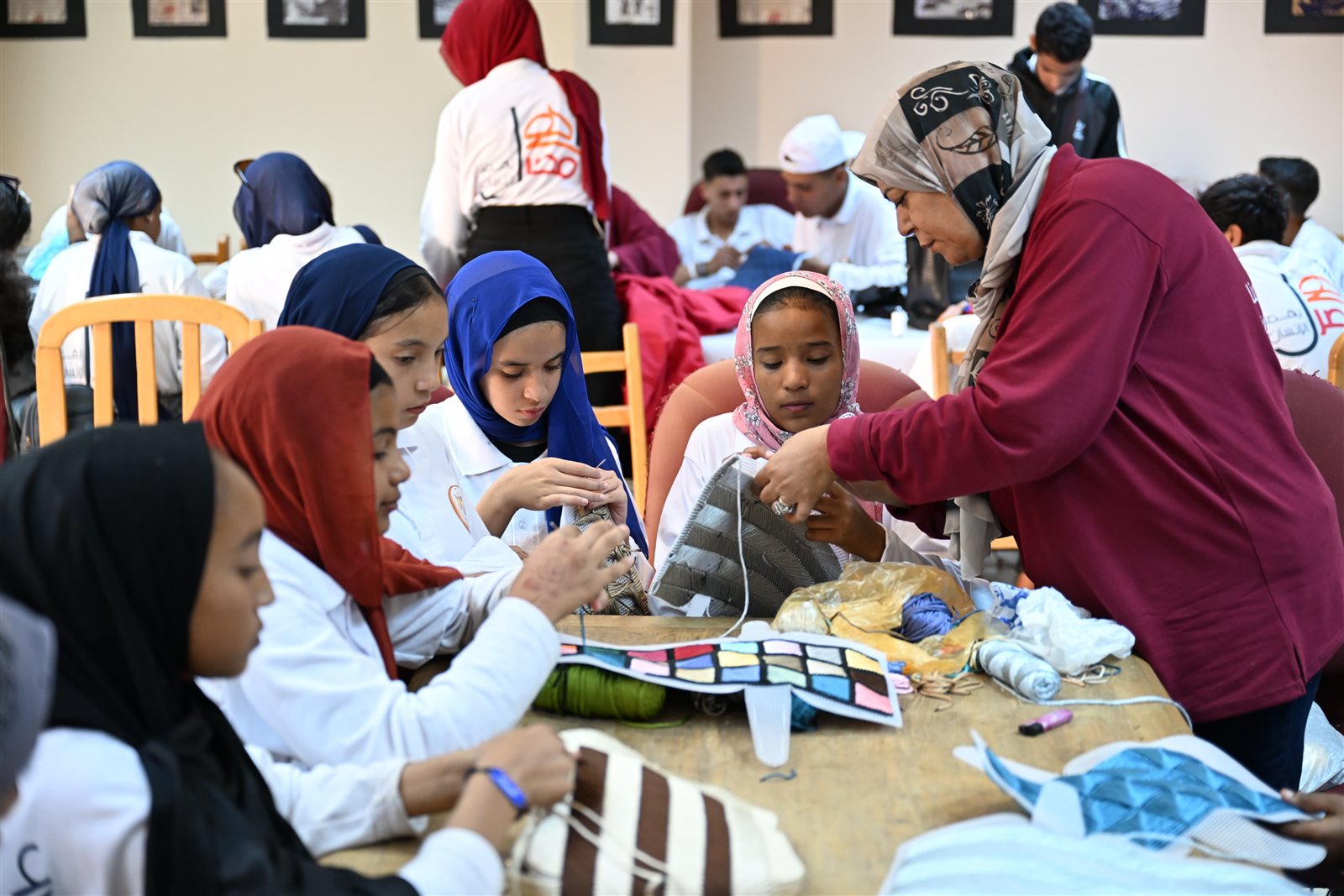 وواصل المدرب حسنى إبراهيم تدريب الأطفال على التصميمات المختلفة كالطائرات والدبابات وغيرها، وقامت المدربة يارا محمد بتدريبهم على تصميم مشغولات يدوية بالخرز تنوعت بين الأساور والعقود بألوان وأشكال متنوعة.