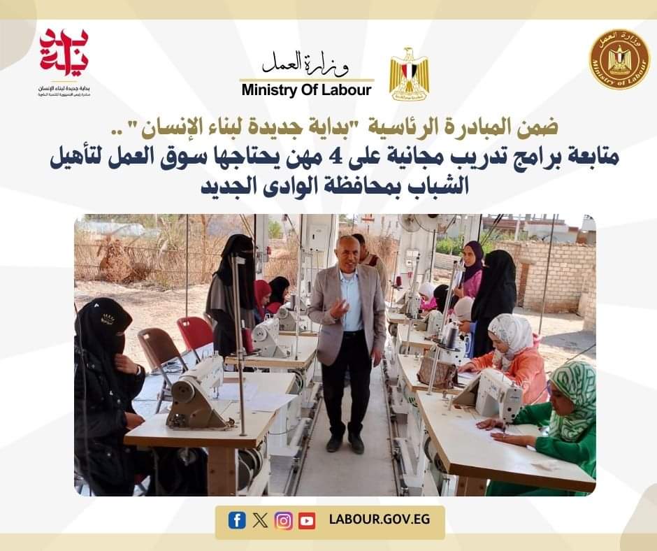 العمل تتابع برامج تدريب مجانية على 4 مهن لتأهيل الشباب بالوادي الجديد