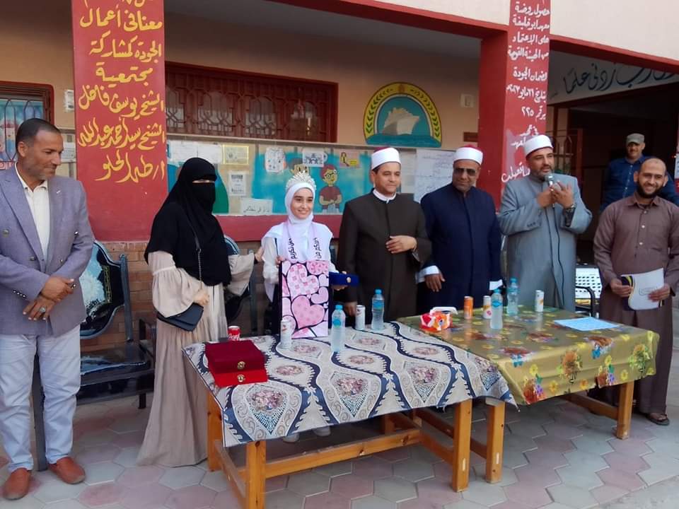 وشهدت الاحتفالية تكريم الطالبة واسرتها وأسرة المدرسة على المجهود الذي بذل لتتمكن الطالبة من اجتياز المراحل التصعيدية للمسابقة واقتناصها المركز السابع في المسابقة التي اقامها الأزهر الشريف.