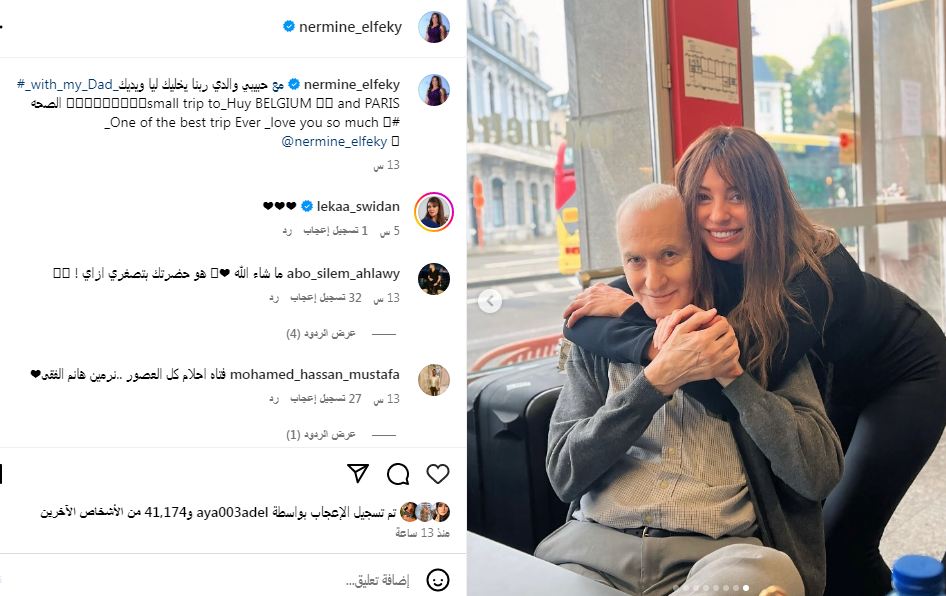 وعلقت نرمين الفقي على الصور عبر حسابها الرسمي على "إنستجرام"، قائلة: "مع حبيبي والدي ربنا يخليك ليا ويديك الصحة في رحلة قصير في بلجيكا وفرنسا.. أفضل الرحلات، بحب جدًا".