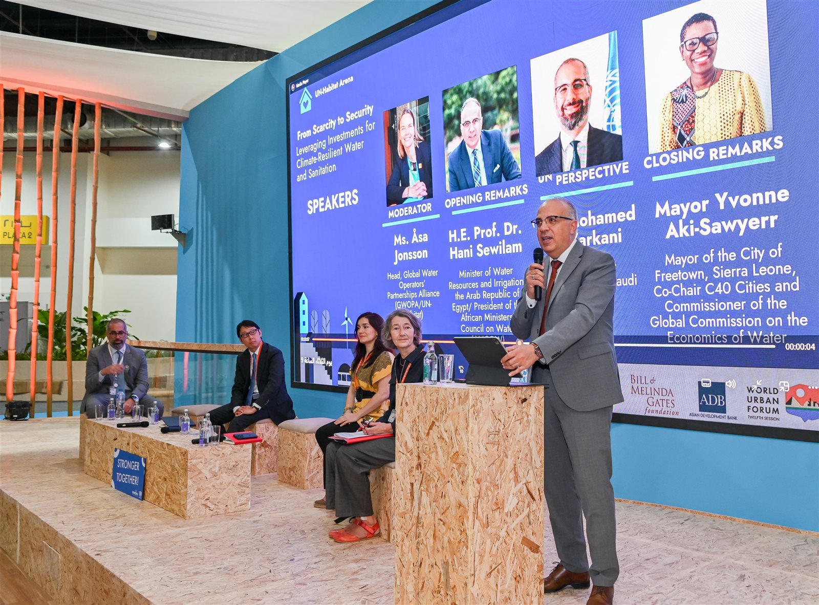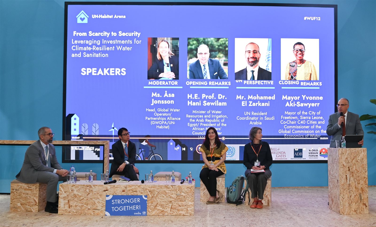 وأكد أهمية تبادل المعرفة وتعزيز الحوار، حيث يعد "المنتدى الحضري العالمي" منصة مهمة لتحقيق الأهداف المشتركة من خلال تبادل المعرفة والخبرات ووضع حلول مبتكرة، وبناء شراكات دائمة، وخلق مسار نحو خدمات مياه وصرف صحي حضرية مستدامة، مشيرا لمبادرة AWARe التى أطلقتها مصر خلال مؤتمر COP27 بدعم من العديد من منظمات الأمم المتحدة والدول الشريكة، وتم تحت مظلة المبادرة إنشاء المركز الإفريقي للمياه والتكيف المناخى PACWA، حيث نجحت مصر فى توفير تمويل لأكثر من ٢٥٠٠ متدرب، وتصميم أكثر من ٣٠ دورة تدريبية متنوعة.