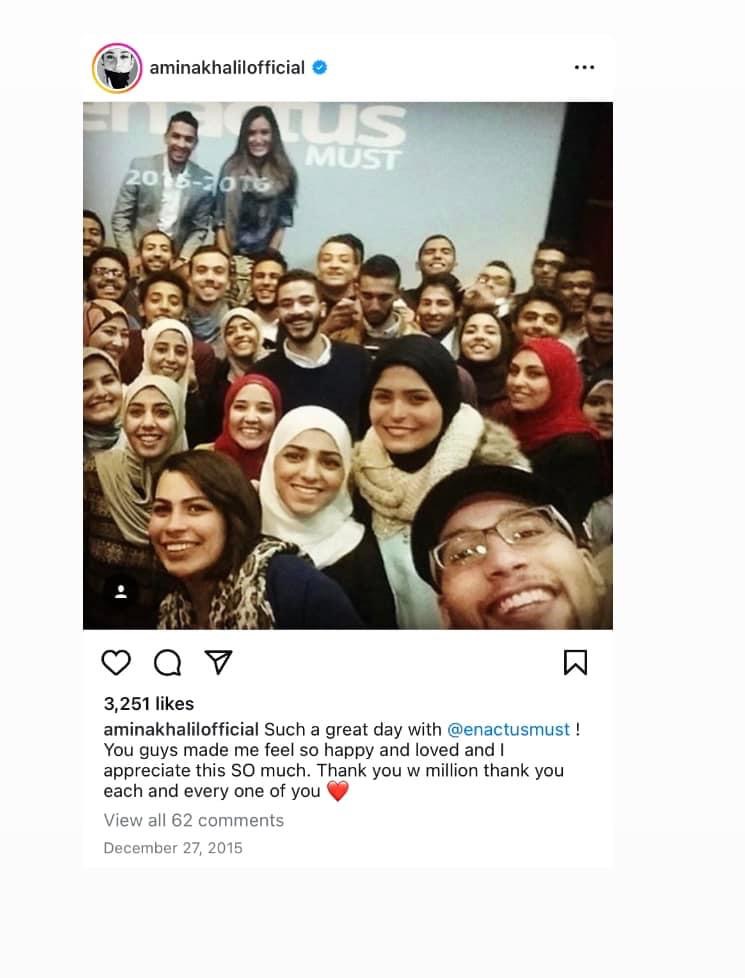 تداول عدد من مستخدمي منصات التواصل الاجتماعي في الساعات الأخيرة، صورة للممثلة أمينة خليل برفقة عدد من المعجبين، كانت قد نشرتها في عام 2015 على موقع “إنستجرام”، وكانت المفاجأة أن أسماء جلال ضمن الحضور، ما أثار صدمة الجمهور من شكلها قبل الشهرة والتمثيل .