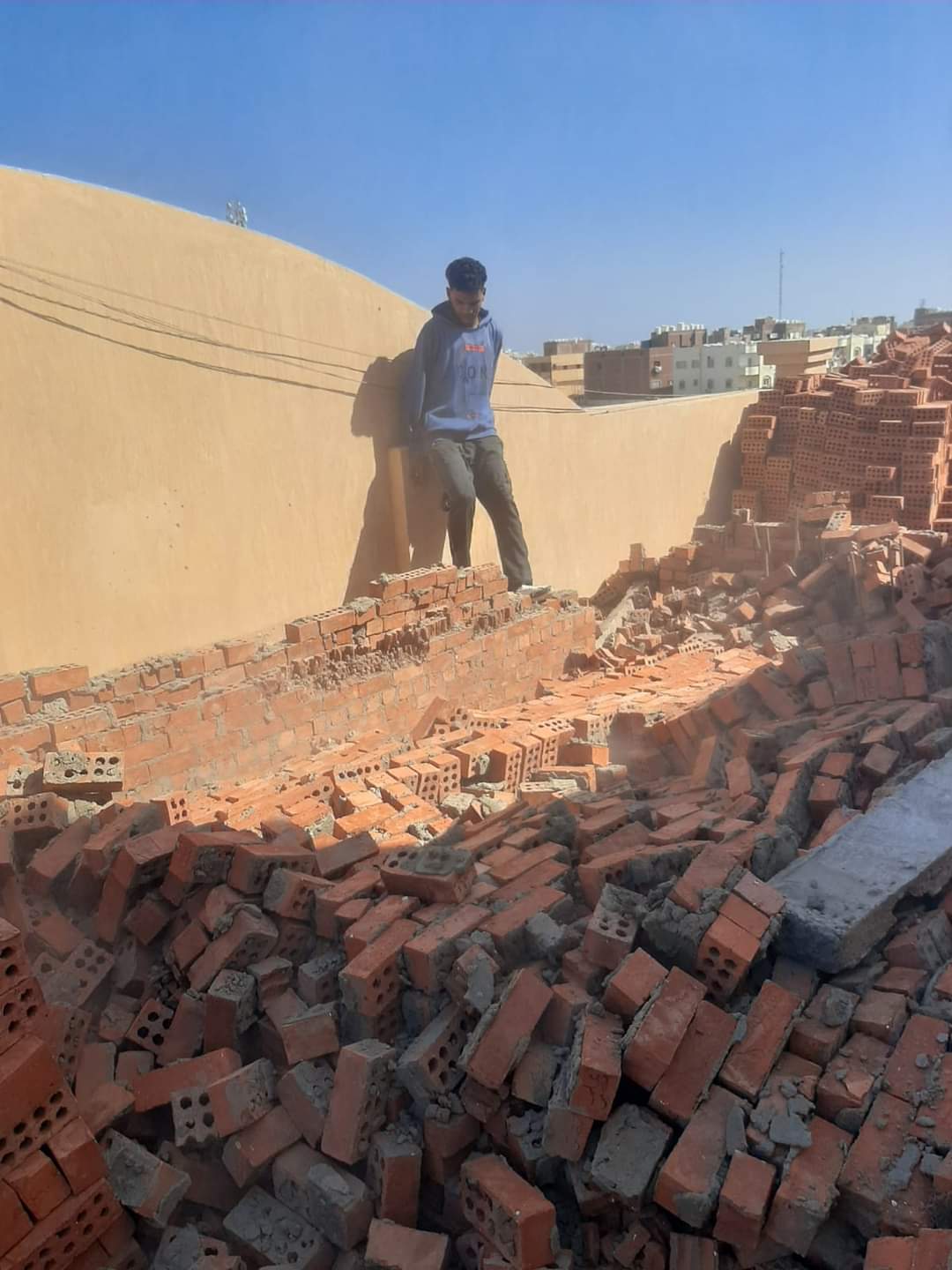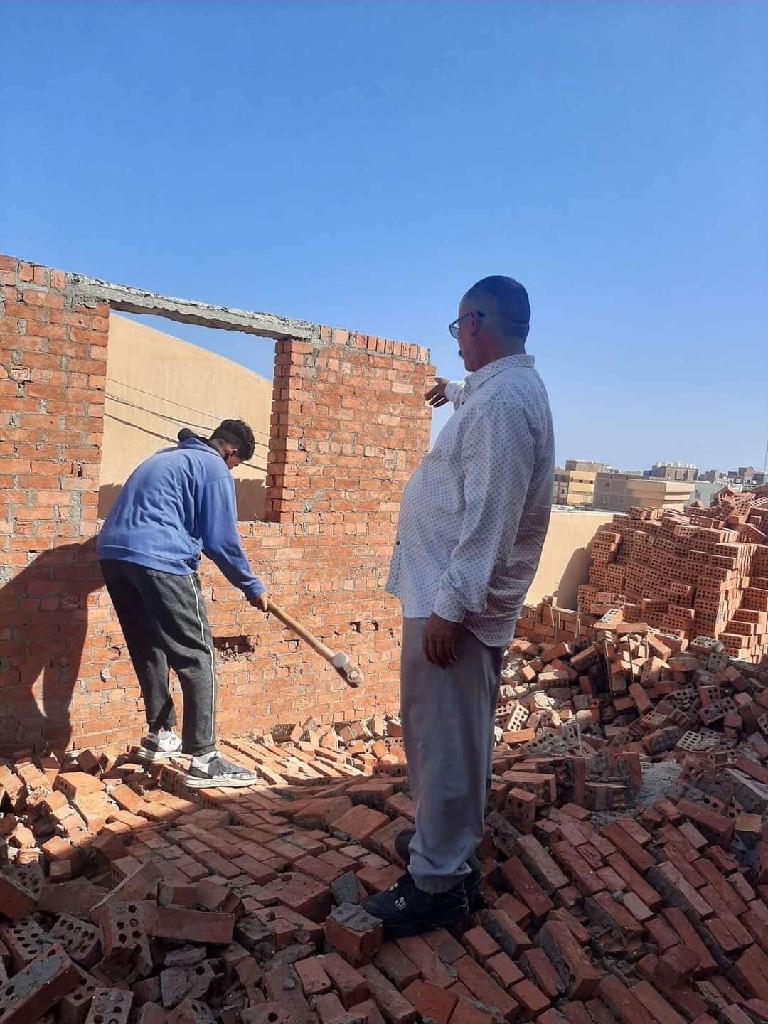 وفى ذات  السياق تم رصد لمبانى مخالفة وبدون ترخيص بالدور الخامس علوى( روف)، عبارة عن مباني من الطوب الأحمر بإحدى العمارات بمنطقة بلوكات مجاهد وتمت الازالة الفورية مع إتخاذ الإجراءات القانونية اللازمة.