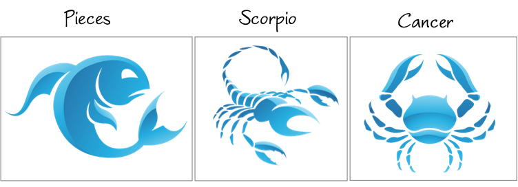 الأبراج المائية.. يبدأ برج الحوت من 19 فبراير إلى 20 مارس، والثاني برج السرطان 21 يونيو إلى 22 يوليو، والثالث العقرب 21 أكتوبر إلى 21 نوفمبر.