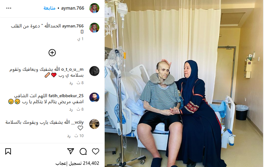 أثار الظهور الأخير لـ أيمن العلي، الملقب بـ "ملك جمال الأردن" حالة من الحزن والتعاطف بعدما طلب من متابعيه عبر مواقع التواصل الاجتماعي الدعاء له بالشفاء العاجل، وأرفق مع منشوره صورة حديثة له من داخل أحد المستشفيات الأردنية وبرفقة والدته.