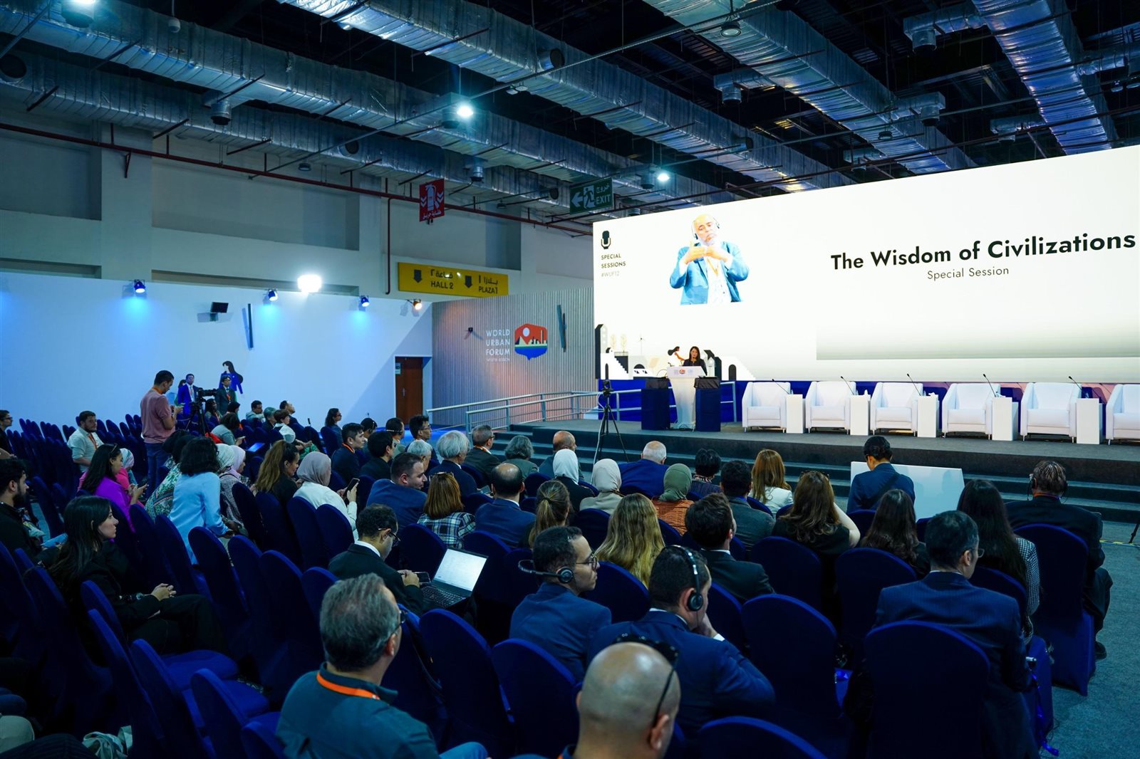 ألقت الدكتورة رانيا المشاط، وزيرة التخطيط والتنمية الاقتصادية والتعاون الدولي، الكلمة الرئيسية، في جلسة خاصة بعنوان "الحكمة وراء الحضارات"، وذلك خلال فعاليات المُنتدى الحضري العالمي الذي تستضيفه القاهرة خلال الفترة من 4-8 نوفمبر الحالي، وذلك بمشاركة الدكتور ميشال ملينار، الأمين العام المساعد والمدير التنفيذي بالنيابة لبرنامج الأمم المتحدة للمستوطنات البشرية (موئل)، والسيدة/ يوريكو كويكي، محافظ العاصمة اليابانية طوكيو، والدكتور إسماعيل سراج الدين، العالم المصري ومدير مكتبة الإسكندرية السابق، والسيد/ منير مانيه، مدير البنية التحتية وتحسين المخيمات بالأونروا، والسيدة/ جوتي هوساجراهار، نائب مدير مركز التراث العالمي باليونيسكو، الدكتور يوسف دياب، أستاذ التخطيط والهندسة الحضرية المستدامة بجامعة جوستاف ايفل. وأدار الجلسة السيدة/ تشيكا أودواه، مخرجة أفلام وثائقية.