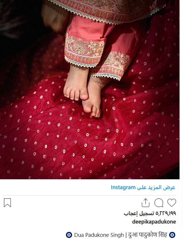 وظهر في المنشور على موقع إنستجرام أقدام الطفلة فقط، وجاء في التعليق: "دوا بادوكون سينج. دعاء: تعني الصلاة. لأنها الإجابة على صلواتنا. قلوبنا مليئة بالحب والامتنان".
