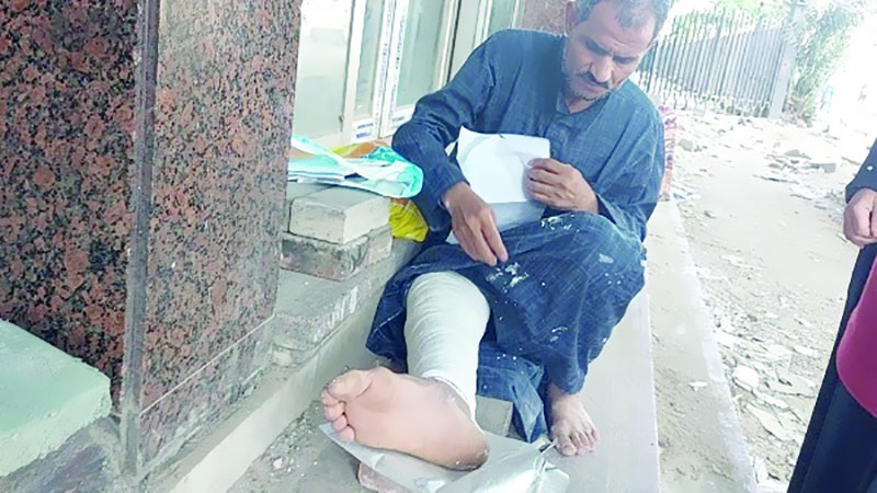 مشاهد من داخل المستشفى: مصاب يوقف نزيف الدم بيديه بعد تركه ساعات دون تلقى الخدمة الطبية.. ومسن ينام على الكرسى بعد طول انتظار تلقى العلاج!