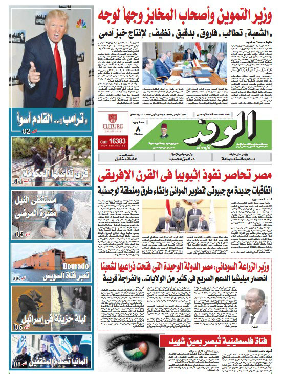 تنشر جريدة الوفد في عددها الصادر، غدًا السبت، الكثير من الموضوعات والتقارير الإخبارية المهمة، أبرزها: "وزير التموين وأصحاب المخابز وجهًا لوجه".