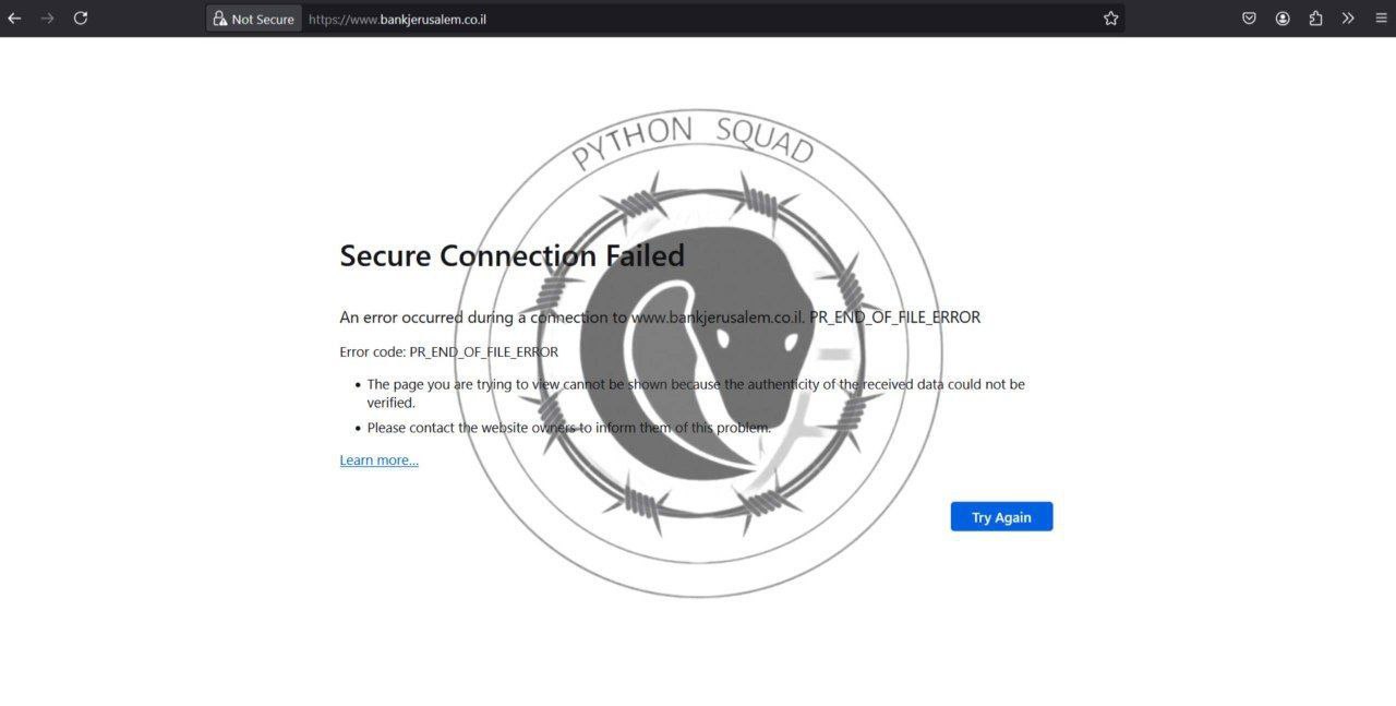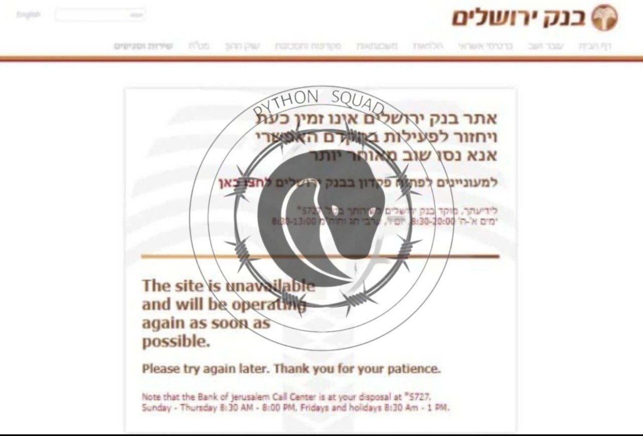 اخترقت مجموعة قرصنة تدعي  Python Squad أنظمة بنك القدس الإسرائيلي بإجراء محسوب ومتطور، ونجحت في تعليق الخدمات المصرفية.