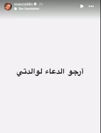 وكانت قد طالبت النجمة مي عزالدين، من جمهورها الدعاء لوالدتها وكتبت عبر "ستوري" حسابها الرسمي على إنستجرام: "أرجو الدعاء لوالدتي".