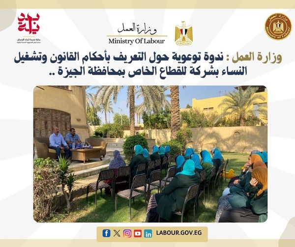 وزارة العمل تنظم ندوة حول أحكام القانون وتشغيل النساء بالجيزة