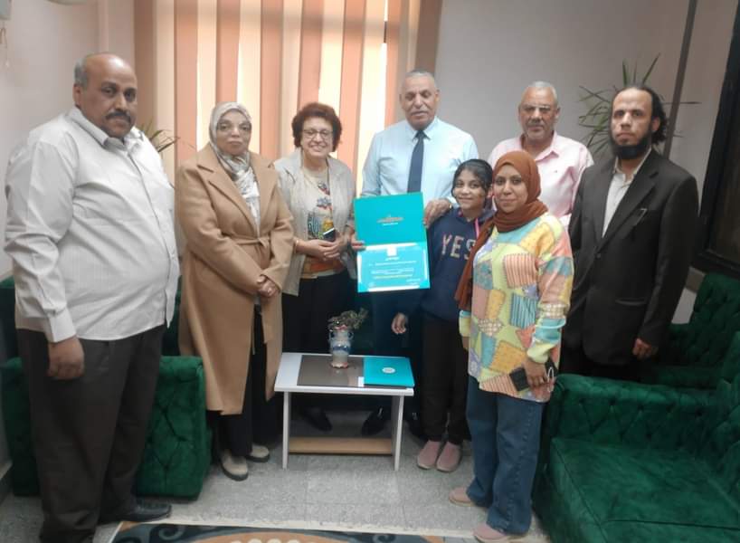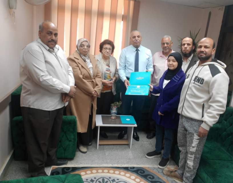 وسلم مدير عام الإدارة شهادات التقدير الخاصة بمسابقه المشروع الوطني للقراءة لكل من: مريم جمال الدين أبو بكر ومريم علاء الدين يوسف وعدي محمد تمام وإيثار عبد الباسط عبد النبى ومريم محمد عبد الموجود وسهيلة السهولى محمد .