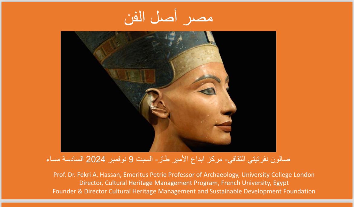 عقد صالون نفرتيتي الثقافي، السبت، فعالية جديدة عن فلسفة الفن والإبداع وتهم عشاق الحضارة المصرية القديمة ضمن فعالية تحمل عنوان "مصر أصل الفن"، استضاف خلالها عالم الآثار الدكتور فكري حسن أستاذ الآثار والتراث الحضاري متحدثا عن فلسفة الفن المصري القديم و دلالاته عبر  مختلف عصوره.