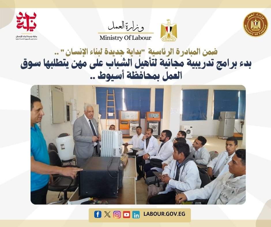 وزارة العمل تطلق برامج تدريبية لتأهيل الشباب على مهن يتطلبها سوق العمل بأسيوط