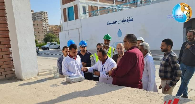 رافق رئيس مجلس إدارة شركة مياه الشرب والصرف الصحي بسوهاج خلال تلك الجولة الكيميائي منصور صابر علي نائب رئيس مجلس الإدارة لشئون المعامل والجودة والمهندس رمضان شعبان نائب رئيس مجلس الإدارة لشئون التشغيل والصيانة والمهندس مدحت سيد احمد رئيس منطقة جنوب لمياه الشرب والمهندس ضياء الدين محمد رئيس منطقة جنوب للصرف الصحي والمهندس حسام طه مدير إدارة التنمية الفنية المستدامة TSM.