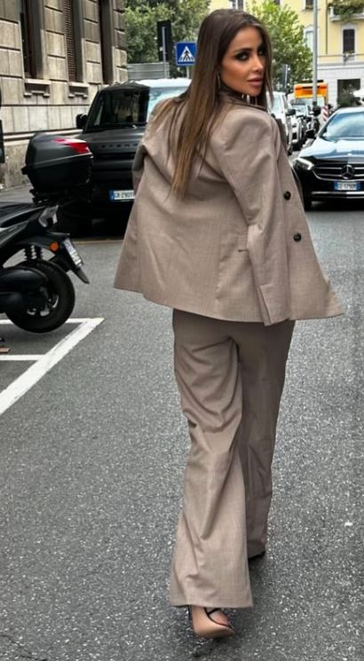 وبدت أنابيلا هلال بإطلالة عصرية مواكبة لموضة خريف وشتاء 2025، مرتدية بدلة نسائية مصممة بأسلوب ناعم وجذاب لتستعرض أناقتها على خطى عارضات الأزياء، فيما انتعلت صندلًا بكعب عال.