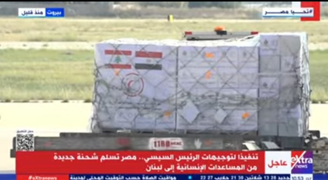 سلمت مصر شحنة جديدة من المساعدات الإنسانية إلى لبنان، صباح اليوم، وذلك تنفيذا لتوجيهات الرئيس عبدالفتاح السيسي، حسبما جاء في بث مباشر لقناة إكسترا نيوز.