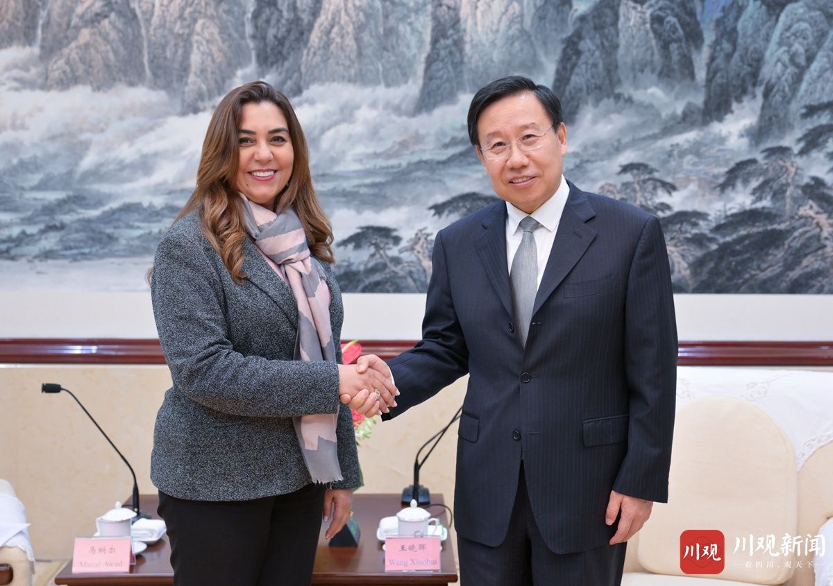 ومن جابنه رحب وانج شياو بزيارة وزيرة التنمية المحلية ومحافظ الأقصر إلى مقاطعة سيتشوان الصينية، مقدماً لها الشكر على المشاركة الفاعلة في مؤتمر الصداقة والتنمية للمدن الصديقة لسيتشوان ٢٠٢٤، كما أشار المسئول الصينى إلى أن جمهورية مصر العربية أول دولة عربية و أفريقية تتمتع بالشراكة الاستراتيجية مع جمهورية الصين الشعبية، مشيراً إلي أنه تحت القيادة الحكيمة للرئيس عبد الفتاح السيسي والرئيس شي جين بينج تستمر العلاقة بين البلدين فى التطور.