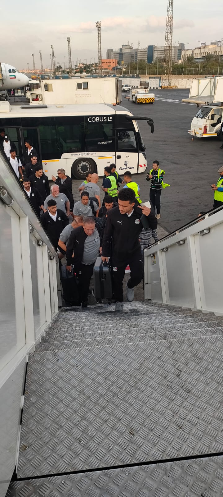 واستقبل بعثة المنتخب المصري بقيادة الكابتن حسام حسن المدير الفني بمطار القاهرة الدولي فريق عمل من مصر للطيران وتم إنهاء كافة إجراءات السفر في سهولة ويسر.