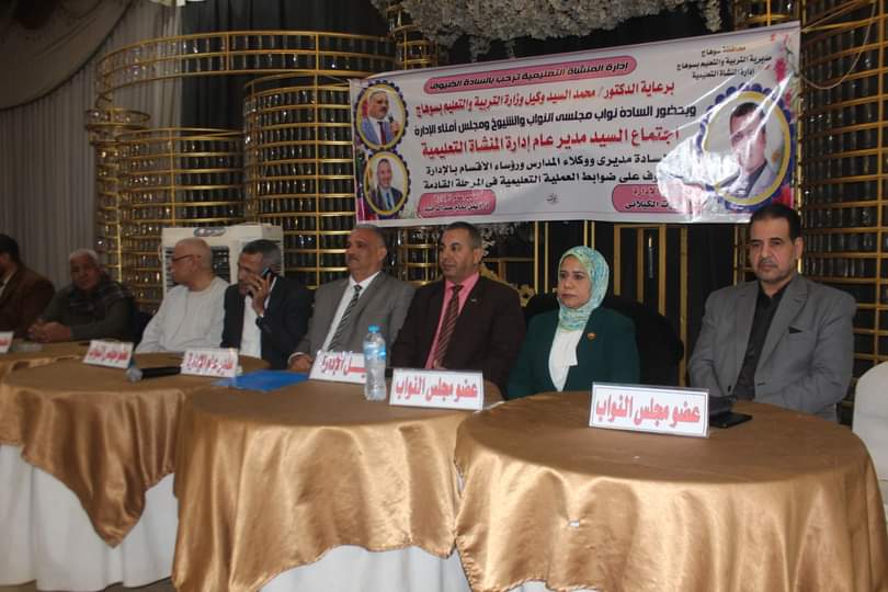 عقد أيمن تمام عبد الرحيم مدير عام إدارة المنشاه التعليمية جنوب محافظة سوهاج، أمس الأربعاء، اجتماعاً موسعاً، بحضور النائب ياسر نصر والنائبة رقية الهلالي بمجلس النواب وعزت خلف الكيلاني وكيل الإدارة ومختار القاضي أمين صندوق نقابة المعلمين بالمنشاه بالإضافة إلى مديري الإدارات النوعية ورؤساء الأقسام ومديري ووكلاء جميع المدارس ورئيس إتحاد طلاب الإدارة.