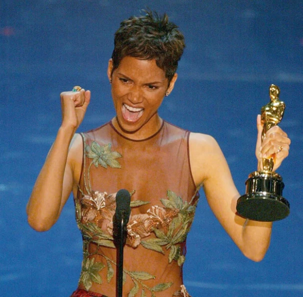 ووسط تصفيق حاد من الجمهور وهتافات بإسمها وعلى جملة " وجائزة الأوسكار تعود إلى هالي بيري" التي كانت تتردد في الارجاء لم تستطيع الحائزة على الأوسكار السيطرة على دموعها مستذكرة لحظتها التارخية أثناء صعودها على المسرح لإستلامها جائزة الاوسكار قبل ما يقرب من 22 عام.