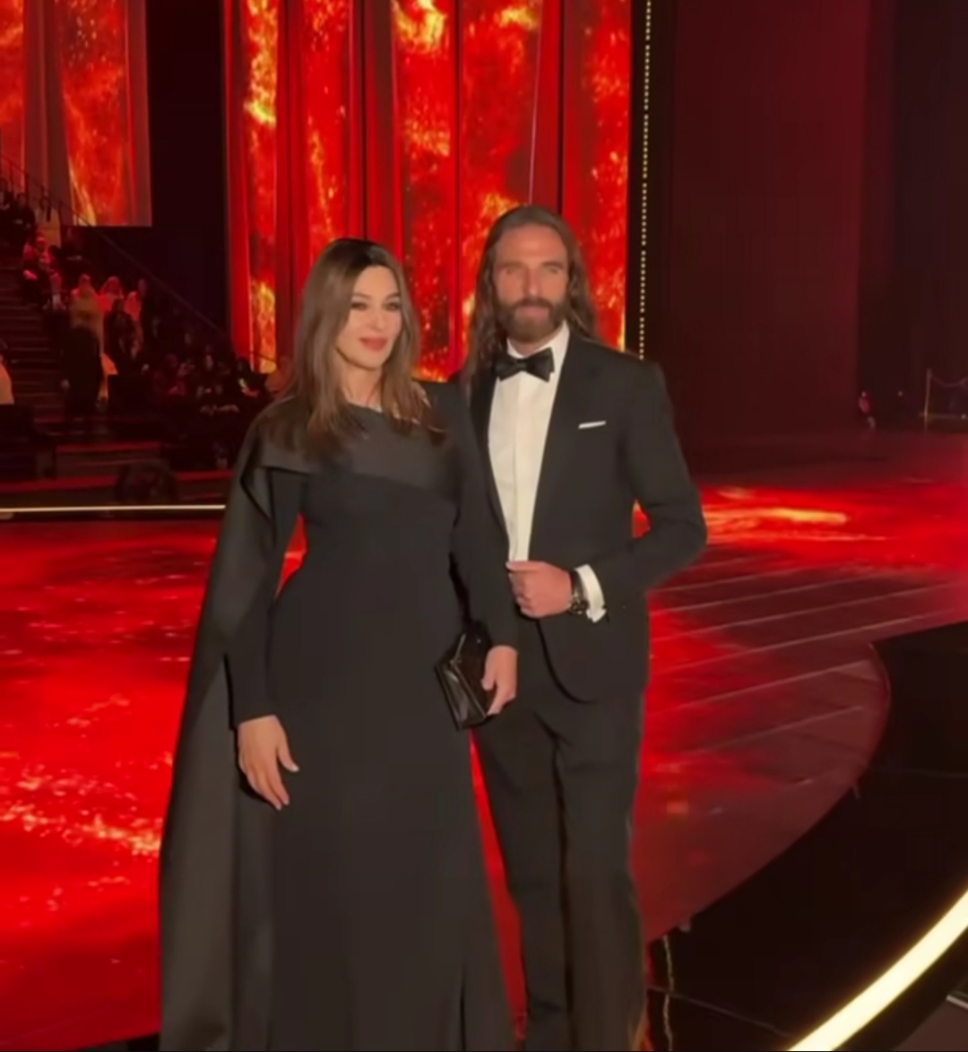 من أبرز الحضور كانت النجمة العالمية مونيكا بيلوتشي التي تألقت على السجادة الحمراء بإطلالة أنيقة وجذابة، اختارت فستاناً أسود ضيقاً بأكمام طويلة، مع فتحة جريئة على الساق، ما أبرز جمالها الطبيعي وقوامها الرشيق.