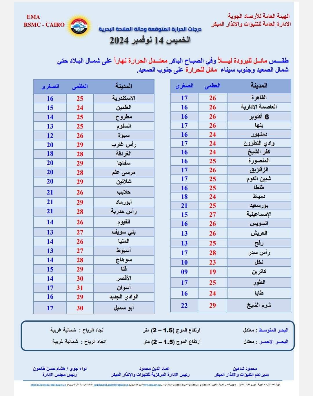 درجات الحرارة اليوم 14-11-2024