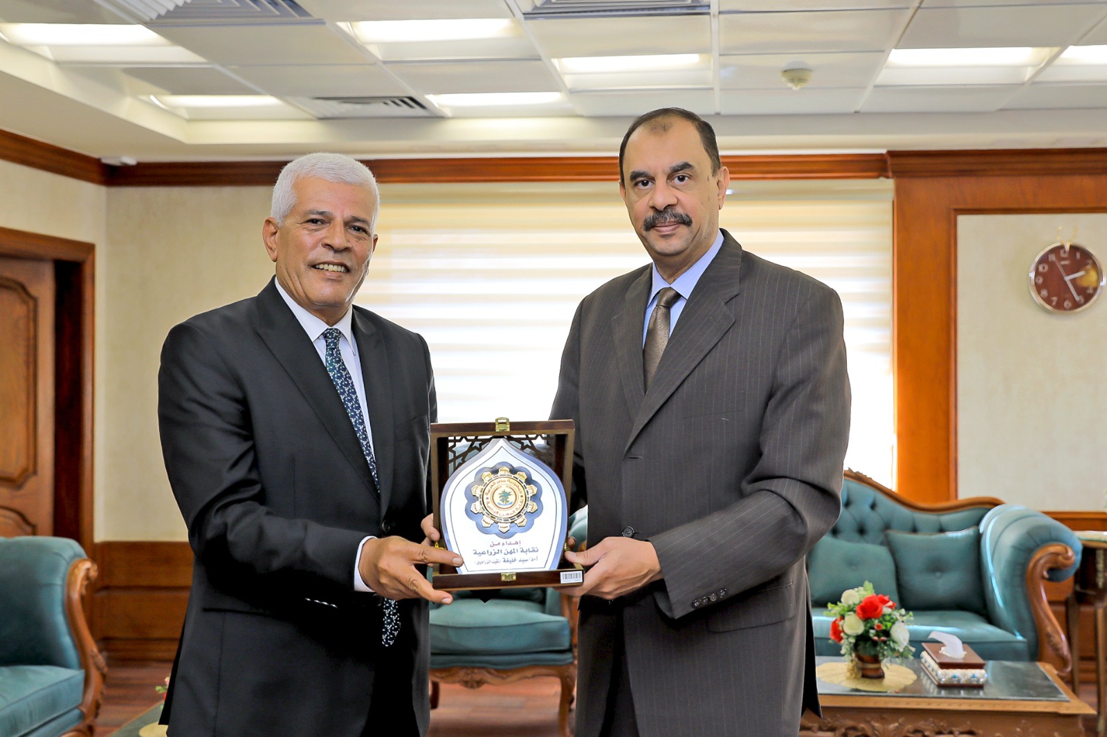 ومن جانبه أشاد النقيب العام برؤية المحافظ ودعمه لأنشطة مختلف النقابات المهنية، وقام بإهداء درع النقابة للمحافظ تقديرا لجهوده في دعم دور النقابة للارتقاء بقطاع الزراعة داخل المحافظة، مؤكدا أهمية التواصل والتنسيق المشترك بين النقابة والأجهزة التنفيذية لتحقيق رؤية مشتركة للنهوض بالقطاع الزراعي، الذي يعد أحد محاور الأمن القومي في البلاد .