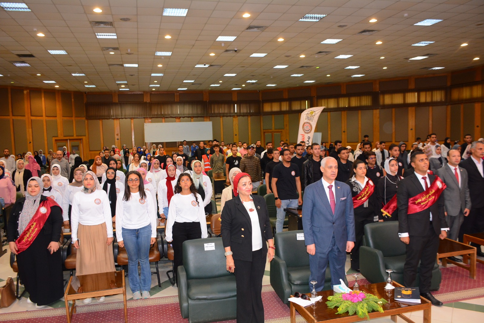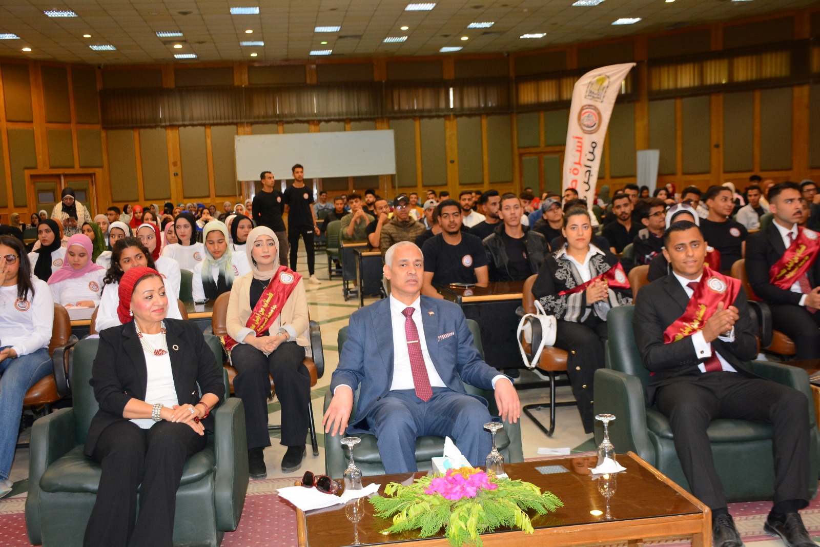 وبحضور: الدكتور أحمد عبد المولى نائب رئيس الجامعة لشئون التعليم والطلاب، والدكتورة مديحة درويش المشرف العام على الأنشطة الطلابية بالجامعة، ومنسق عام أسرة "طلاب من أجل مصر" بالجامعة، والدكتور هيثم إبراهيم مدير عام الإدارة العامة لرعاية الطلاب، وسكرتير عام الأسرة، ومحمد سيد مدير إدارة العلاقات العامة لرعاية الطلاب، ومسئول الاتصال بالأسرة، والطالب مارتن ناصر مقرر الأسرة، رافعين شعار "شارك بإيجابية في الانتخابات الطلابية..هدفنا خدمة طلابنا" تزامناً مع انطلاق ماراثون الانتخابات الطلابية بالجامعة.