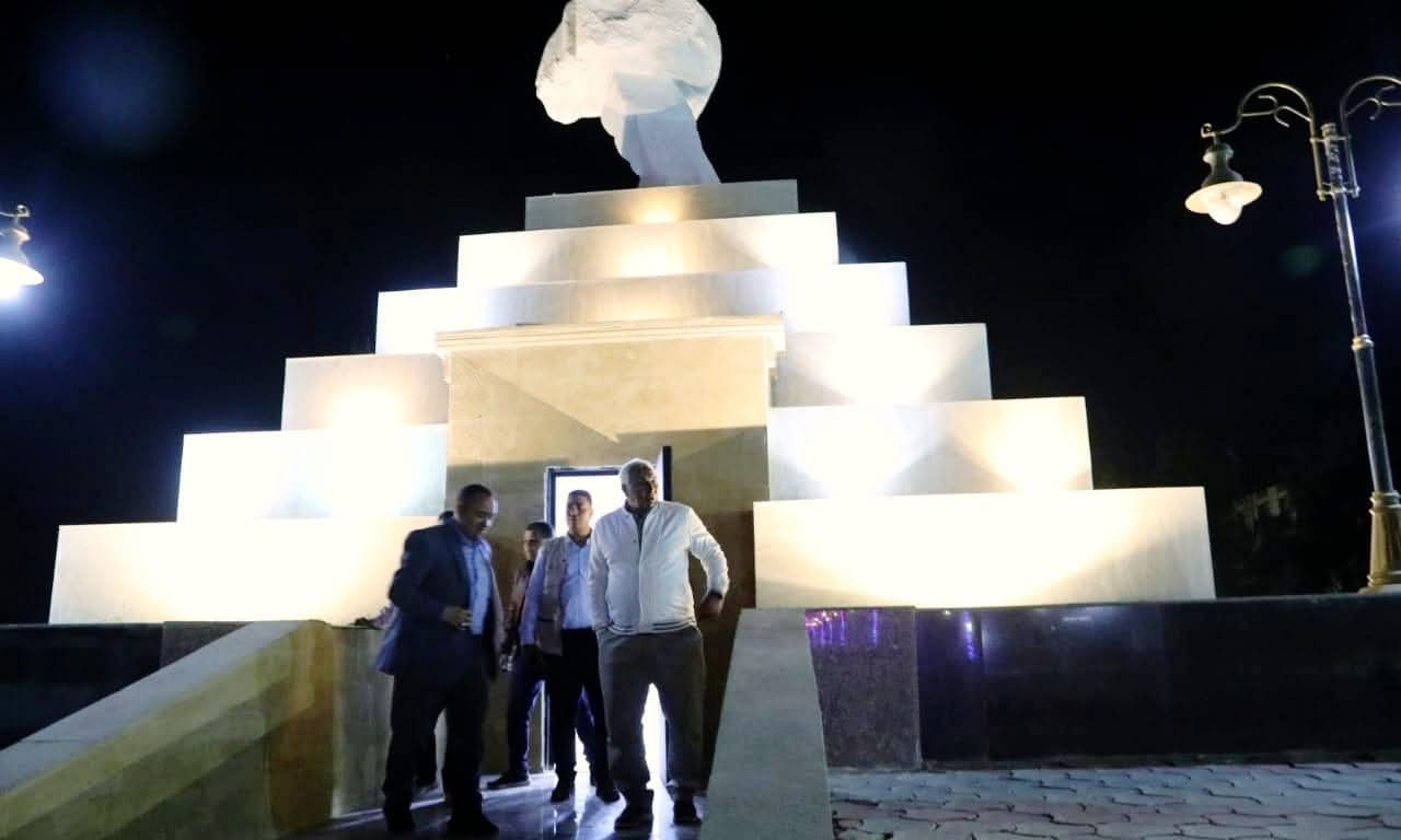 واطلع المحافظ على أعمال تطوير الميدان المصمم على شكل هرم سقارة ويعلوه رمز الصحراء البيضاء، وداخل الهرم رسومات تشمل آثار المحافظة وتمثل العصور التاريخية المختلفة.