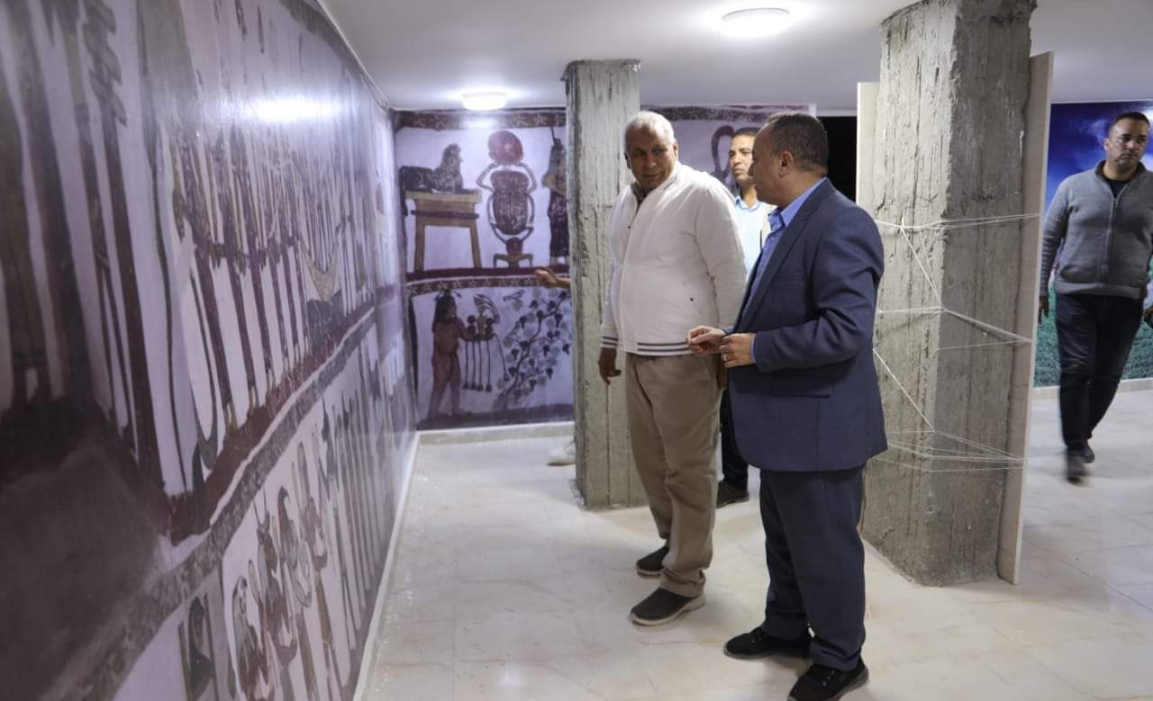 وتحاكي جدران المتحف شكل مقابر المزوقة، وأشاد محافظ الوادي الجديد بمراعاة هوية المحافظة وتراثها، وتطوير الوجه الحضاري للمدن، مُوجهًا بوضع لوحة توضح اسم الميدان ومشتملات المتحف.