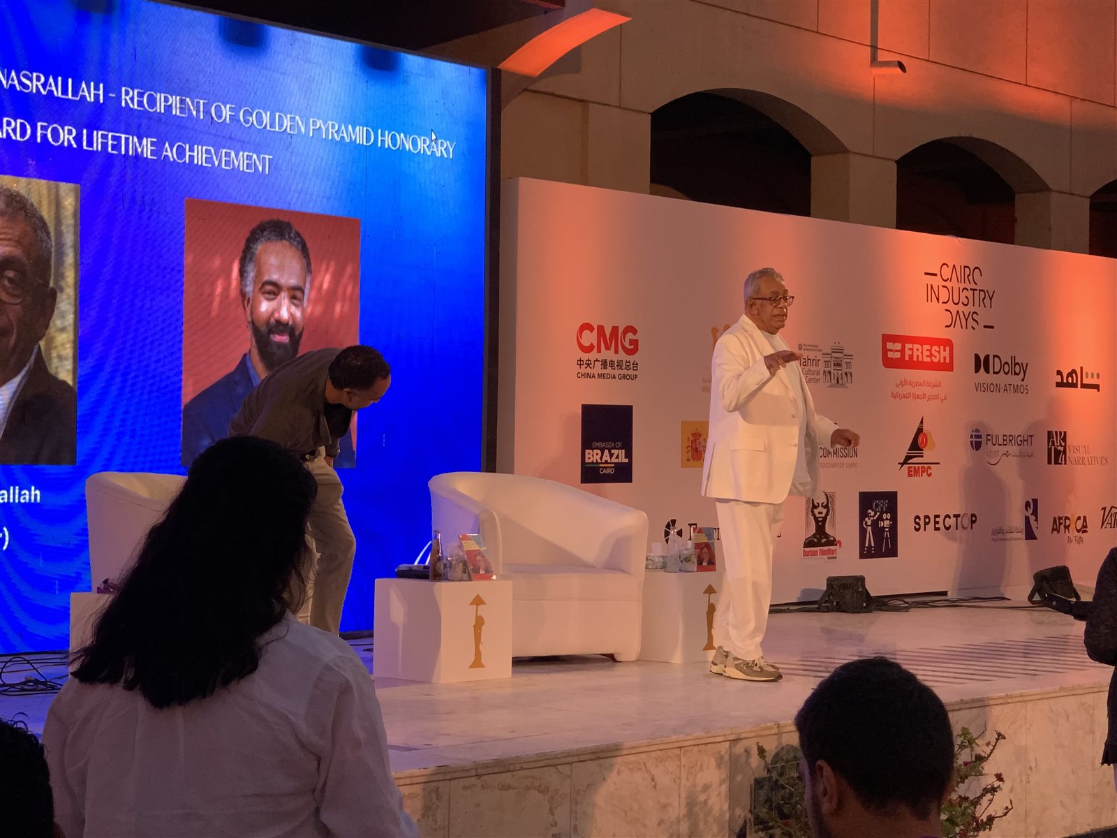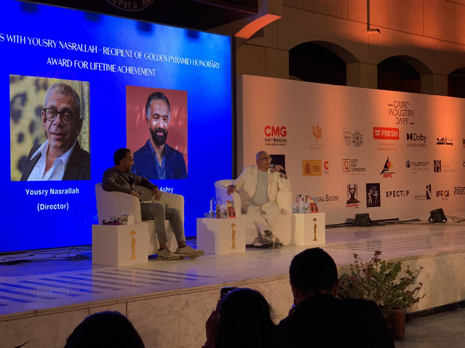 حصد يسري نصر الله جائزة الهرم الذهبي التقديرية لإنجاز العمر، وذلك تقديرًا لما قدمه طوال مسيرته الفنية الحافلة وقال: "أشكر حسين فهمي والوزير على ترشيحي للجائزة والسينما المصرية العام الحالي أفضل من حيث الإيرادات والمشاركة في المهرجانات الدولية، ونحن حراث السينما لأنها وجداننا، وأقدم التحية لزملائي السينمائيين الفلسطينيين، وقدم في نهاية كلمته الشكر للسينما".