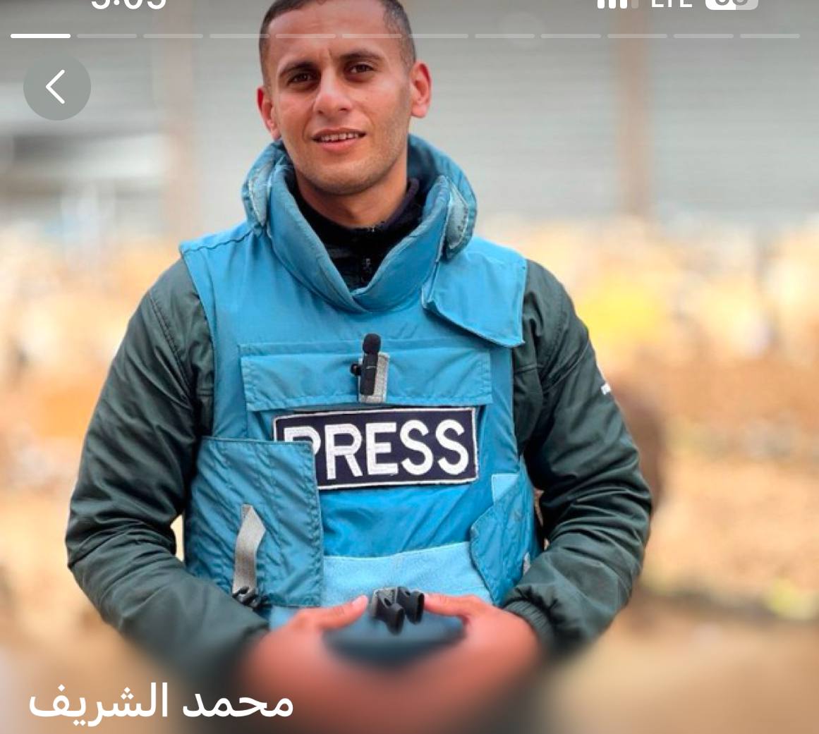 استشهاد الصحفي محمد الشريف، مساء السبت، جراء إصابته بطلق ناري من طائرة كواد كابتر محيط مستشفى كمال عدوان شمال غزة.