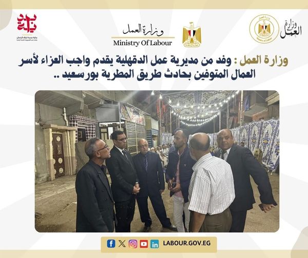 وفد من وزارة العمل يقدم واجب العزاء لأسر ضحايا حادث "المطرية بورسعيد"