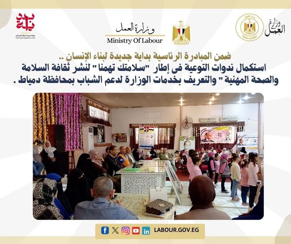 وزارة العمل تستكمل ندوات "سلامتك تهمنا" لنشر ثقافة السلامة والصحة المهنية بدمياط