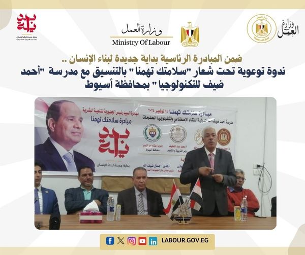 وزارة العمل تنظم ندوة "سلامتك تهمنا" بالتنسيق مع مدرسة للتكنولوجيا بأسيوط